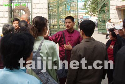 | 4月20日,由陈家沟老村长和中国陈家沟太极拳推广中心秘书长原福全先生带领,陈家沟当代太极拳名师陈大虎、陈冲、陈二虎、陈志强以及学生一行11人在参加完2006永年广府第三届太极拳年会拳技大赛之后,应安阳殷都太极拳俱乐部之邀,在安阳市网通公司和人民公园与当地太极拳爱好者进行了友好交流。安阳市体育局副局长侯燕民、体育总会办公室主任梁女士出席了交流活动,并作重要讲话,提出两地以后要互相往来、交流学习、共谋发展,大力弘扬太极文化。陈家沟陈冲、陈志强、陈大虎、陈二虎分别表演了传统的太极拳小架、老架、新架、二路炮捶以及太极推手,原汁原味的太极拳表演,引起了现场观众阵阵热烈的掌声。安阳电视台、安阳日报、东方今报等媒体也对此次交流活动进行了报道。 据俱乐部主任史晓明先生介绍:安阳市殷都太极拳俱乐部成立于2001年8月15日,现有会员1300余人。成立以来,先后应邀参加了多次国际和国内太极拳大赛并取得了骄人的成绩,共获金牌13枚银牌9枚。俱乐部创编的太极球和太极鸳鸯球套路在太极拳界引起了强烈的震撼,《中华武术》、《武林》、《少林与太极》、《中国新闻》等杂志和《香港商报》、〈广东卫视台〉、〈湖北卫视台〉、《中国新闻网》、〈太极网〉等媒体都做了报道和评述。