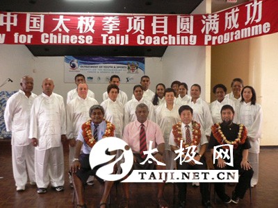 新华网苏瓦11月29日电(记者姜显明)伴随悠扬舒缓的轻音乐,50多名太极拳习练者29日在斐济首都苏瓦市政厅礼堂内,以他们的习练成果为斐济举办的中国太极拳培训教程画上句号。 中国太极拳培训教程是应斐济政府要求、由中方全力协助承办的一次双边文化交流项目。9月15日,斐济总理姆拜尼马拉马正式启动培训教程,号召政 府公务员和社会大众踊跃参加不同班次的太极拳习练。2个多月来,在中国武术协会教练徐向东的精心教授下,包括不少在斐华人在内的500多名太极拳爱好者积 极参加习练,为太极拳走进斐济开创先河。18人在结业典礼上被授予“优秀习练者”称号并获颁证书。 中国驻斐济大使韩志强在培训教程结业典礼上发表讲话指出,此次活动是中斐两国关系发展的见证。建交35年来,两国关系不断增强,不仅表现在政治和经贸合作方面,也反映在文化体育交流等其他领域,相信这类活动会越来越多,两国关系发展前景更加广阔。 斐济教育官员瓦恰巴卡感谢派遣优秀教练到斐济传授太极拳,称这不仅有益于斐济民众的身体健康,而且使人们更加了解主张和谐相处的中国文化。他表示,斐济政府将继续在全国其他地区推广太极拳运动,推动斐中两国关系迈向新的高度。 |
