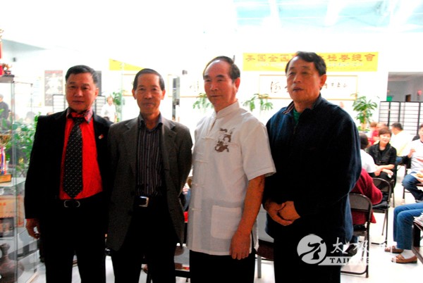 跌打足疗中心的名医 罗荣华, 沈阳联谊会 会长 刘涛,杨式太极拳名家杨俊义和程进才大师合影