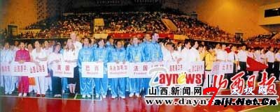 为了一个共同的目标——强身健体、陶冶情操、以拳会友、增进友谊,来自五湖四海的太极拳高手与爱好者不远万里汇聚古城太原,一展风采。开幕式上,围绕太极文化展开了一系列表演,有太极锣鼓、百人49式太极阵、歌舞《江山》、舞蹈《咱当兵的人》、太极名家绝技、太极推手、巴西歌舞等精彩的文体节目,诸多的太极文化表演令人难忘,其中来自欧美非等14个国家的108名太极拳爱好者进行的49式太极阵表演最引人注目,架式舒展大方、动作简洁柔和,动中有静、柔中寓刚,不时赢得了全场观众阵阵掌声。来自海南省海口市的领队吴文莱说,在杨振铎先生多年传授下,杨氏太极拳不仅在山西、在全国,乃至在世界各地都得以推广传播,为推动全民健身活动的开展做出了积极的贡献。通过本届赛事的举办,必将对弘扬中华传统武术,增进山西杨氏太极拳国际间的交流,促进山西体育文化和经济发展起到积极的推动作用。