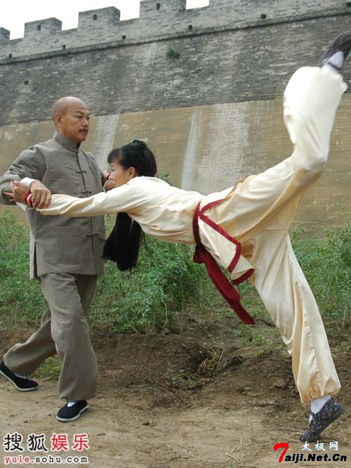 杨式太极拳第六代传人:王少君 据王少君回忆,当天拍摄的是她在河边袭击罗家英的戏,她使完一招“双峰贯耳”后接着要上前一步,结果罗家英老师的脚还没收回去,她担心踩到罗老师的脚下意识往回收腿,但重心已经前移,眼看就要趴倒在地,罗家英老师急忙上前相扶,但因为用力过猛,她还是摔在了地上,正好地上有一块尖石头,就划破了腿。