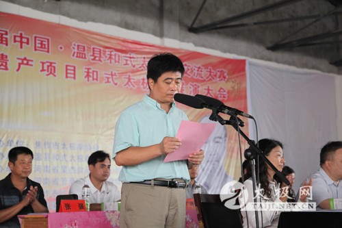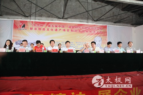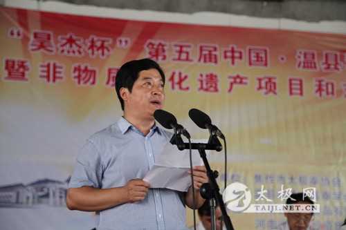 | 2014年8月22日,“昊杰杯”第五届中国-温县和式太极拳交流大赛暨非物质文化遗产项目和式太极拳展演大会在河南温县职业技术教育中心内举办。 参加此次交流大赛的有来自全国各省地和式太极拳代表队的西安赵堡和式太极拳协会、西安培华学院、永城市和式太极拳协会、四川省和式太极拳研究会、绵阳市青少年活动中心等34支代表队,本次大赛共有400多名和式太极拳的从练者参加。 本次比赛为期三天,比赛项目有和式太极拳传统套路、精要十八式、十三式及器械比赛,段位制单练、对练套路,全国功力大赛项目——桩上徒搏等。 开幕式由温县武术协会主席宋明军主持。出席了本次大赛开幕式的有焦作市太极拳协会会长赵功佩、焦功作市政协副主席和金贵,温县人民政府县长李英杰、副县长张金太,河南大学体育部主任洪浩、西安体育学院武术系主任马文国,《搏击》杂志主编田文波、焦作市群艺馆党组书记聂琨,和式太极拳传承人和有禄等领导和各地嘉宾。 焦作市太极拳协会会长赵功佩宣布大赛开幕后来自全国各地的和式太极拳爱好者表演了他们精心编排的和式太极拳节目,表演结束后比赛正式开始。开幕式结束后本网对和式太极拳领军人物和有禄进行了采访,他表达了对本次大赛的期许并展望了和式太极拳未来发展的蓝图。 太极网记者:杨佳奇  郭雪梅