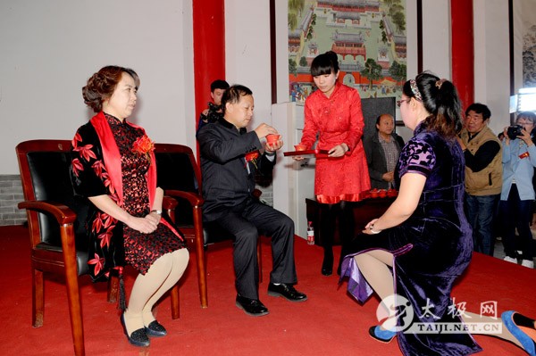 2014年10月6日,杨澄甫太极拳汾阳中心成立五周年庆典暨宋斌收徒仪式在山西省汾阳市文庙隆重举行。 杨澄甫太极拳汾阳中心——斌儒堂成立于2009年的10月6日,在主管宋斌孜孜不倦的努力下得到了长足发展,更发展出广州“斌恵堂”分支,将杨澄甫杨式太极拳传播至广东地区。 参加此次庆典活动的,有从太原赶来的宋斌老师的同门师兄弟,有汾阳市相关部门领导,也有当地各武术院校、协会。庆典仪式上,宋斌老师亲自组建的太极锣鼓队让观礼嘉宾耳目一新,宋斌老师独具匠心,将杨式太极拳动作柔和到传统锣鼓乐队演奏当中,太极与传统民乐相得益彰,相映成趣。随后,汾阳市陈式太极拳爱好者们登台表演,陈式与杨式太极拳爱好者得以互相欣赏、沟通、切磋。汾阳市少林武术学校、汾阳市老年大学均带来精彩的节目为本次活动助兴。 庆典活动结束后,宋斌老师在文庙“明伦堂”喜收七名弟子。这是宋斌老师首次收徒,他特意选在“明伦堂”举行仪式,希望弟子们能够领悟儒家文化中尊师重道,恪守伦常的传统理念。宋斌老师本人便十分尊敬恩师杨振铎大师,收徒前专程赴太原请示恩师,仪式结束后又特赴太原向杨振铎大师汇报活动现场情况。 |