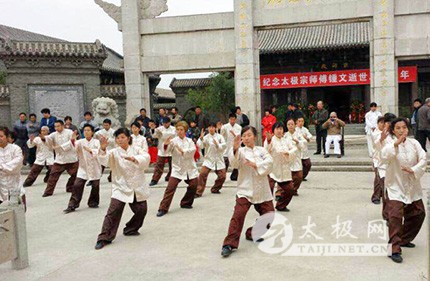 2014年10月12日,在傅声远大师的带领下、在河北邯郸永年各界领导的关心下、同时在杨家太极第五代掌门杨志芳大师的参与下,纪念太极宗师傅钟文逝世二十周年大会在宗师陵寝河北永年县广府隆重举行。 纪念活动由邯郸太极拳友会会长杨清波先生主祭,在冀众师门、拳友以及各界来宾二百多人参加祭奠,尊师重道,忠义德仁,弘扬太极,后继有人。 |