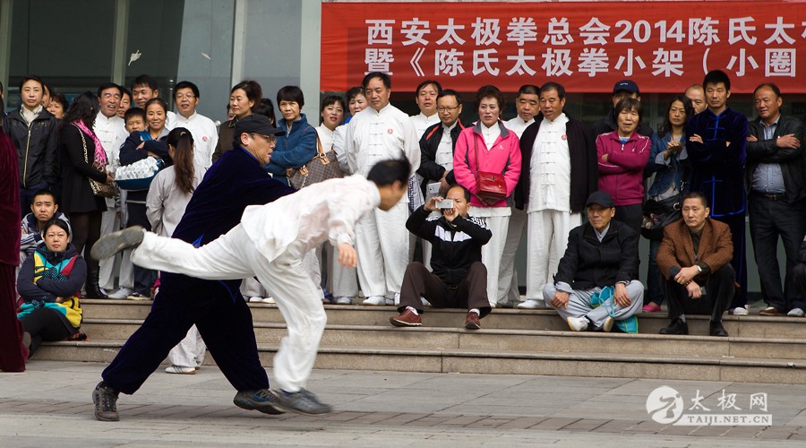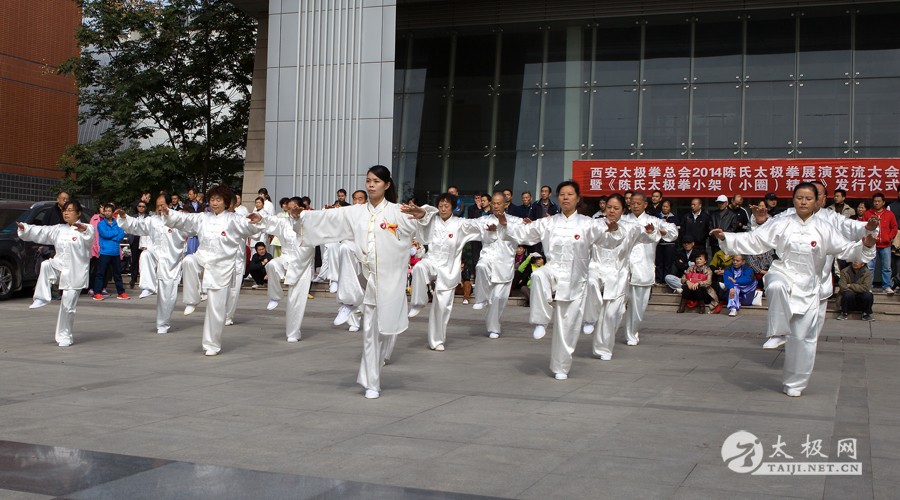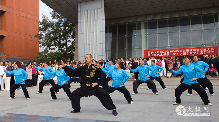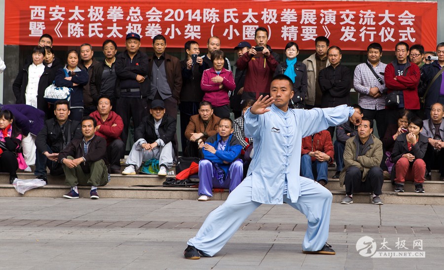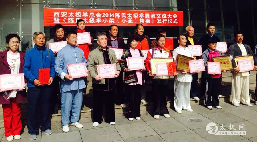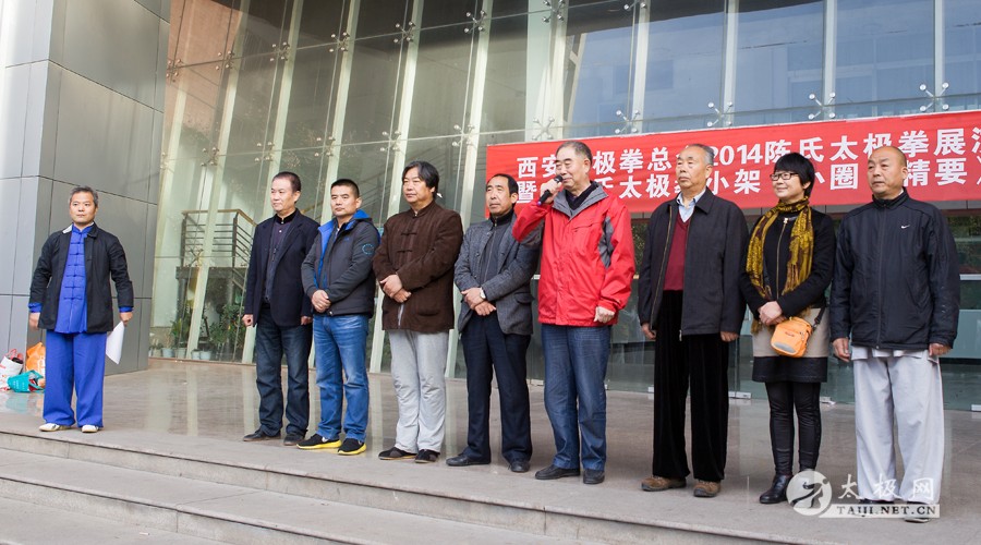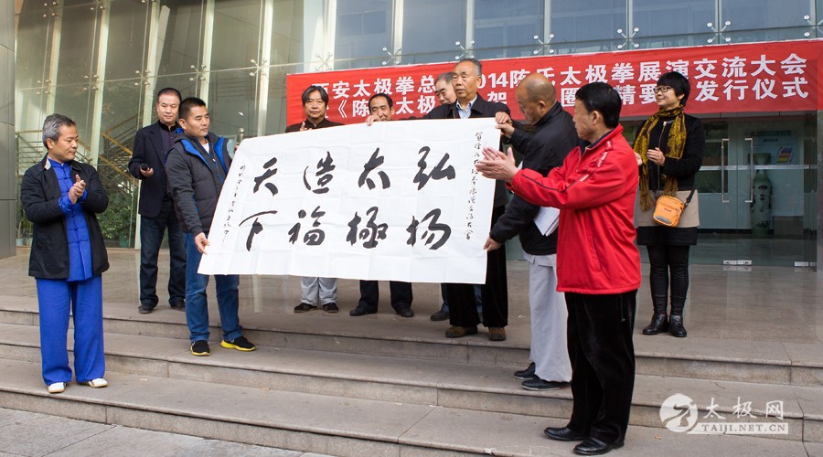 暨《陈氏太极拳小架(小圈)精要》发行仪式 活动由陕西省武协副秘书长、西安市武协副主席、西安太极拳总会副会长兼秘书长刘永强主持。 西安市武协主席陈振虎在致辞中首先对此次活动的顺利举行表示热烈的祝贺,并对西安目前太极拳蓬勃发展的局面感到欣喜,体现了人民生活水平的提高。他希望西安市的各太极拳组织今后要更多地加强交流,提升理论研究水平和技艺,并向太极传人职汝磊先生《陈氏太极拳小架(小圈)精要》一书的出版表示祝贺!中国国际太极拳网站总编原福全也在发言中对西安太极拳近年来的发展给予了高度肯定,并希望这样的交流活动经常举办。西安市武协常务副主席方秀敏还为活动赠送了“弘扬太极,造福天下”的字幅,另外在仪式上还重点介绍了《陈氏太极拳小架(小圈)精要》一书的结构及特点,是近年来少有的高质量太极拳著作。