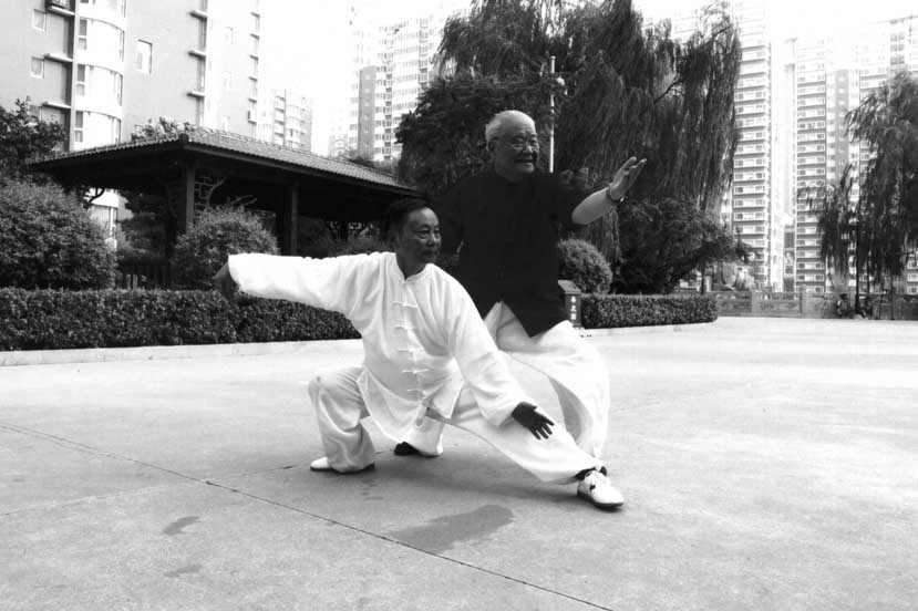 在杨式太极拳中,称腰为“中盘”;胯为“下盘”;肩为“上盘”。“三盘”,以“中盘”为主宰,融为一体。 下盘(胯),也叫“底盘”。底盘要稳住,放平,放正。只有底盘稳住平正了,躯干才能中正直竖。就像石碑的底座一样,底座稳住平正了,石碑才能竖得正直稳当,不至歪斜倾倒。 太极拳在盘拳架时,底盘始终要稳、平、正。怎样才能做到稳、平、正呢? 总体上讲,就是要遵循太极拳的要则理法,只有依照太极拳的规矩,才能成就太极拳的方圆。说得具体些,直接些,就是在“沉劲”时,要“开胸”“开背”(含胸拔背),肩要放松,肘要屈坠,并侧重“开背”,以气下,这时气就下沉丹田。 “顶劲”时,也要开胸开背,肩要放松,肘要屈坠,并侧重“开胸”,以神提,顺项贯顶,虚灵之气形成,或者说,“虚灵顶劲”形成。这里说的顶劲,不单指头部,而是从胯(底盘)以上皆要神提,经腰而上,顺着脖颈,贯至头顶。顶劲时,沉劲不去;沉劲时,顶劲不失。 上下有股对拔对拉劲势,使得躯干直竖中,出现一种空灵憩适伸筋拔骨般的舒展感觉。至于什么是在沉劲时侧重开背,顶劲时侧重开胸呢?这是由于人们在后天演变出一种拙力,就是这种拙力导致躯干形成病态——不同程度的凹胸凸背,随着年龄的增长,凹凸形状越来越大。 开背,是在纠正凸背;开胸,是在纠正凹胸。背开胸开了,胸、背就都平正了,内气就能通顺了,这样,就能有效地增进躯干的直竖。躯干直竖了,也相应验证了底盘是稳、平、正的。底盘和躯干都稳、平、正了,“平送腰胯尾闾垂”才能成为可能。底盘稳、平、正了,两腿就会被带动得顺势灵便,气感充盈,“迈步如猫行”就自然而然地形成了,脚底似“植地生根”的感觉也就出来了。 上盘(肩),要松沉。在盘拳架时,上盘始终要松沉、虚腋、与肘相随,与顶劲配合,与开胸、开背协作。 肩(上盘)要松沉,就须虚腋,不虚腋,双臂就会贴着躯干,僵硬劲去不掉,使得内气受阻。肩的放松,须与肘相随;肘的屈坠,可以加大肩松的程度,使之达到松沉境地。尤须注意的是,要与顶劲配合,与顶劲配合起来,才能体现出轻灵劲势,否则,就会导致“上盘神不顶,一身难轻灵”的毛病。 这里,要特别留神,顶劲时,肩不能相随俱上(相随俱上是拙力,或叫生活习惯用力);相反,肩要松沉,肘要屈坠劲向底下,这样,有顶有沉、有上有下、对拔对拉,就出现一种伸展虚灵劲势。 再就是与开胸开背协作好,因为,两臂与胸背相连,与开胸开臂协作好,可增大两臂的灵活性,增强两臂的气感。在与开胸开背协作、并侧重开背的同时,结合顶劲,“拔背”(一种劲道)的感觉,就明显地出来了。这些与肩直接相关的部位配合得越充分,肩的作用就发挥得越充分。 中盘(腰),系力源所在,四肢拳脚皆由这里带动。上行——腰(中盘)带肩(上盘),肩带肘,肘带腕,腕带手掌达于指尖;下行——腰带胯(下盘或底盘),胯带膝,膝带踝,踝带脚掌达于脚趾。 可见,上、下盘皆由中盘带动,中盘在三盘中,居主宰地位。拳论喻腰为“蠹” 、为“车轴”,是很恰当的。士兵的作战行动,必须服从司令部的号令;车轮的转动,必须先有车轴转动的带动。 可是,人的四肢拳脚动作,在后天背离了“力源”,养成自动、直动的不良习惯,已成积习,因此,短时间不易进入太极“力道”里去,这是要有思想准备的。在学习中,不可道听途说、不可自作聪明,要严格按照太极拳的要则理法锻炼,尤其要严格纳入被腰脊带动的状态。 即四肢拳脚不可直接出动,不可自行其是,不可局部比划,不可乱动。并且,腰脊的带动必须本着太极拳腰脊的规范,而不是人们习惯上理解的那种腰的带动,如此,才能逐渐体现出太极轻、柔、绵、缠的劲道与腰的奥妙功能和独特感觉。 “底盘无腰换,进退如拌蒜”,“顺项贯顶”起自腰,这是前辈们用经验来说明腰的作用。可以说,处处是腰,腰无处不在,所以,太极先师们指出:“命意源头在腰际(脊)”,“刻刻留心在腰间(脊)”。 谈到中盘,就自然联系到肘,因为,太极拳的所有动作,都是肘离中盘最近。二者密切相关,互相协作,是内里与外面、手臂与周身相合的关键之处,因此,要求肘要屈坠,意向中盘。中盘合乎要则理法了,行拳走式的纲就抓住了。 三盘在运作过程中,同时伴随着内气的运行。要说明这点,还须接着前面提到过的一句话往下谈,这句话是:“这时气就下沉丹田。”当丹田之气达到一定程度,就向外弥散——向下,经裆沿两腿内侧至涌泉,再由涌泉顺两腿外侧而上至胯;向后,即向丹田背后弥散,再及两旁,与由下而上之气会合,共同形成“胯气圈”。 胯气圈之气上行至腰,形成“腰气圈”。腰气圈之气上行至肩,形成“肩气圈”。肩气圈之气再继续运行,弥散至两臂及双手。这样,“三盘气圈”都形成后,就“气遍全身不稍滞”了。 三盘及其相关部位的要则理法体现得越充分,运作就越得体,气感就越酣畅。这时,可以说就达到了练意、气、神的阶段了,盘起拳架来内里的意味就浓厚了,即便是外行人看了,也会有舒服的感觉,这与单纯地比划个拳架的所谓的太极拳完全是两码事儿。 |
