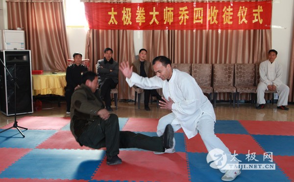 | 伴随着春节前夕的喜庆氛围,2月16号上午,任长春拳法传人乔四老师喜收10名爱徒。众多太极拳爱好者欢聚一堂,见证了这一喜上加喜的重要时刻。 乔四师承太极拳名师任长春之孙任林,自9岁开始学拳,几十年如一日,潜心研究太极拳拳理、拳法和拳技,其拳势洒脱,雄浑而沉着,缜密缠绵,深得陈清平太极拳一脉的精髓。 在拜师仪式现场,10名弟子依次向师傅递交拜师帖,从老师手中接过传承书,简约而又庄重的拜师仪式过后,标志着他们正式成为了乔四老师的入室弟子,为任长春拳法的传播和弘扬注入新的活力。拜师仪式上进行了太极拳表演。 |