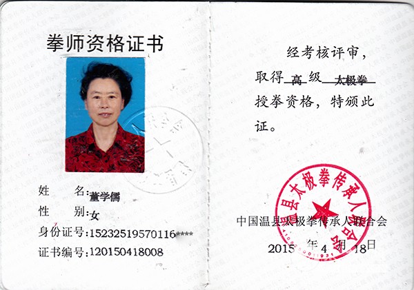 自2005年起替师传艺,主要是教“五家”拳,剑,刀。近几年为大力推广陈式太极拳老架,新架,陈式心意混元太极拳,剑,刀等。每年所授学生达百余人。有时一次学习班要超过二百余人。所教学生先后在国家级,区级,市级赛事中均多次获得金,银,铜等奖。我本人曾多次荣获国际香港第11届国际武术节上拳,剑,对练中的两金一银及女子金熊亚军奖等。还多次获得区、市级的最高奖等。 |