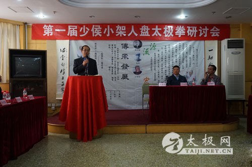 2015年4月18日,纪念丁宗正先生逝世五周年暨首届少侯小架太极拳研讨会在北京举办。少侯小架人盘太极拳名家丁宗正先生弟子、门人及武术界同仁近百人参会,对丁先生进行深切缅怀,并就少侯小架太极拳进行展示和交流。 太极拳是中华传统名拳,以其博大精深的哲理和行之有效的技击、养生功效,近百年来越来越受到人们的重视,风行全球。太极拳支派众多,各有千秋,杨少侯先生所传小架人盘太极拳就是太极拳众多支派中一朵娇艳的奇葩,在体用方面都独具特色,但由于历代秘传,人们多知其名,鲜见其技,能全盘掌握者更是凤毛麟角。当代对于少侯小架人盘太极拳传承做出重大贡献的首推丁宗正先生。 杨少侯(1862—1930年),杨式太极拳第三代传人,河北永年人,名兆熊,字孟祥,晚字少侯,后人称为“大先生”,是杨澄甫的长兄。他性情刚烈,为人仗义,太极功夫上乘,名冠于世。杨澄甫先生在京教拳期间,其高足徐岱山久闻杨少侯威名,常请他指点拳艺。徐岱山的得意弟子张简(1906—1979年),北京人,酷爱武术,习拳多年,熟练掌握刀枪剑棍等多种拳械。他在京经营客店生意,于是将杨少侯请到家中学艺。因他人品端正忠厚,又和少侯先生性情相投。少侯先生便将小架人盘太极拳倾囊相授。张简在自己的手抄拳谱中就留有“师承杨少侯,受业徐岱山”的记载。文革期间,张简遭遇冲击,一身绝技无处施展。晚年,他结识华北水利水电学院北京研究生部体育教师丁宗正先生。丁先生(1930·5—2010·4),祖籍江苏淮安,幼时随家人落户山东济南,1951年考入中央体育学院(北京体育大学的前身),1954年毕业并留校任教,1956年调入北京水利电力经济管理学院研究生部从事体育教育工作,1974年师从于张简学习少侯小架人盘太极拳,深得真传。他苦练多年,深得太极三昧。他感慨时代变迁,世事难料,少侯小架人盘太极拳这一武学瑰宝不能仅仅掌握在自己一人手中,以免将来会有失传湮没的危险,于是,他打破陈规,在体育教学之余,大力推广少侯小架人盘太极拳,传授了众多弟子,晚年时还拍摄了拳势图片和视频,为后人留下了宝贵的资料。丁先生在少侯小架人盘太极拳的传承上做出了划时代的贡献。 丁宗正杨式小架 少侯小架人盘太极拳除具备其他太极拳支派的基本要领和特点外,还有自身的独特之处。既重意念,又重巧劲;快慢相间,紧凑缜密;螺旋运动,节节贯穿;拳势与其他支派太极拳名称相同,动作不同;行拳盘架高低起伏,松紧并存;节拿抓闭等技击用法隐含拳势之中;是养生养神悟道之阶。为更好的传播、弘扬少侯小架人盘太极拳,丁先生去世之后,他的弟子们于2011年在北京成立了杨式小架人盘太极拳研究会,丁先生长子丁启明担任会长,早期弟子侯瑜京担任秘书长。丁宗正先生德艺双馨,无私授拳,从学者众多,学生分布全国及海外各地,得益于少侯小架人盘太极拳的习练,更有些弟子开班授徒,利益大众。 参加研讨会的有张简先生公子、北京杨式小架人盘太极拳研究会荣誉会长张宝琪先生,丁宗正先生弟子、门人有丁先生长子、北京杨式小架人盘太极拳研究会会长丁启明先生,丁先生早期弟子、北京杨式小架人盘太极拳研究会秘书长、中国水利水电科学研究院教授侯瑜京博士,北京杨式小架人盘太极拳研究会副会长、山东济南太极拳名家、原济南市财政贸易委员会副主任于学模先生,北京杨式小架人盘太极拳研究会副会长、国际宋氏形意拳总会副会长兼秘书长、美国聚武堂太极气功养生学院院长、俄罗斯圣彼得堡中国武术学院创始人、聚武堂体育公司董事长陈汝庆先生,北京杨式小架人盘太极拳研究会副会长、天津李旭洲形意拳研究会会长、深州李老能形意拳研究总会副会长宋润和先生,北京杨式小架人盘太极拳研究会副会长、原水利部松辽水利委员会书记栾卫国先生,北京杨式小架人盘太极拳研究会副会长、河北省水利科学研究院教授苏向明先生,北京杨式小架人盘太极拳研究会副秘书长、丁宗正先生在吉林长春的弟子李国华先生,丁先生在北京的弟子白长春先生,丁先生在山东济南的弟子杨国杰先生,丁先生在辽宁的弟子姜冠友先生等,还有丁宗正先生在北京、山东、河北、东北、广西等地的弟子、学生及再传弟子,以及丁先生子女、亲属。参会的武术界同仁有北京大学教授、北大技击研究会会长陈占奎先生,宗岳太极拳传人刘晔挺先生等。 丁宗正先生门人及嘉宾百余人首先赴位于京郊凤凰岭西山公墓的丁先生墓地进行祭扫和缅怀,随后大家赴京水宾馆会议厅进行研讨和交流。研讨会由侯瑜京博士主持。丁启明先生致辞,对同门和来宾的到来表示热烈的欢迎。张宝琪先生对少侯小架人盘太极拳的传承历史进行解说,并现场展示了技艺。白长春、于学模、陈汝庆、宋润和、李国华等丁先生弟子分别讲述了和丁先生学艺的经过,深切回忆了丁先生精湛的武技和高尚的武德,对丁先生授业之恩以及对少侯小架人盘太极拳传承发展做出的巨大贡献表示衷心的感激和深切的纪念,还分别进行了少侯小架人盘太极拳拳艺展示、理论说明和散手应用展示。 陈占奎、刘晔挺等嘉宾先后发言,表达了对丁宗正先生的崇敬和纪念,对丁先生众多弟子为拳艺传承发展所作出的努力给予高度评价,希望大家再接再厉,将少侯小架人盘太极拳发扬光大,并和大家进行了拳艺交流。于学模先生的济南弟子们进