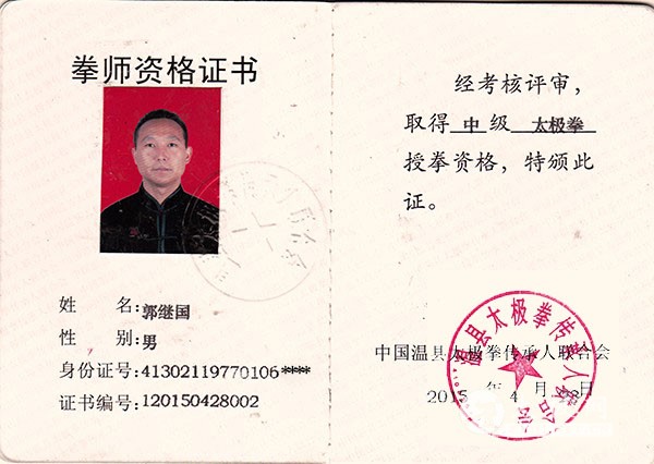 1990年1月跟随少林寺俗家弟袁耀林先生在安徽省临泉县武术学校习练少林拳5年。 1995年2月受邀到福建省福清市西山文武学校授拳,在这期间跟随师伯张文斌先生(现任西山教育集团董事长)进一步习练少林拳。 1995年至今在福建省福清西山学校任教授拳20年。 2014年2月跟随武当弟子张贻莹女士习练太极拳,随后视频学习研究陈式太极拳至今, 太极拳功夫博大精深,我深知距太极拳功夫还十之千里,相信在不断学习和刻苦训练的 |