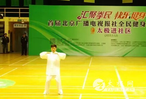 | 首届北京广播电视报社全民健身公益活动太极展演于5月12日下午在首都体育学院大学生体育馆举行。 “武道传奇·功夫太极”创始人、陈氏太极拳十九世掌门人陈小旺大师入室弟子、世界散打冠军孙武先生应邀出席。 北京广播电视报社自2013年7月份成立全民健身太极推广公益活动,至今已以在北京几十个社区及公园建立活动站点,直接受益者近万人。本次活动共有来自北京各县区社区的24支队伍近千名太极拳爱好者与观众参与。北京大学养生文化研究中心主任,汉字太极创始人李朝斌教授及北京广播电视报社,北京电视台,北京广播电视台等领导出席活动。活动聘请了太极宗师陈小旺先生、太极大师王西安先生及李朝斌教授为特邀顾问,吴京为形象大使。