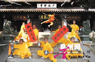 | 新华网河南频道2月19日讯 泉州晚报报道:(记者洪佳景) “嗨、嗨!”昨日,泉州少林寺五观堂中传来了阵阵呼喝声,武僧们正将南少林五祖拳打得虎虎生威。过年的热闹劲儿刚过,他们便开始为即将举行的第七届“海丝”文化节的表演活动忙碌开了。本月22日(农历正月十六),在泉州少林寺演武堂将进行两场精彩的南少林武术专场表演。 “作为本届‘海丝’文化节的重要活动之一,南少林武术专场将全力展现南少林武学精粹。”泉州市武术协会主席蔡金星介绍说,专场表演每场12个节目,历时40分钟,除了保留了南少林武术传统拳术、器械套路等节目外,还有南少林气功绝技的精彩奉献。特别值得一提的是,参加中央电视台2008年《武林大会》的选手们也将登场亮相,以擂台挑战赛的形式演绎南少林五祖拳的真打实斗。蔡金星说,这样真实的对决是泉州80年来从来没有过的,这次“重出江湖”必将让南少林武术的内涵和精华更加为世人所了解。 此外,在本月21日(农历正月十五)晚“海丝”文化节开幕式《祝福2008》专场文艺晚会上,泉州少林寺武僧团还将和南少林武术学校的学生们组成百人以上方阵倾情献艺。 |