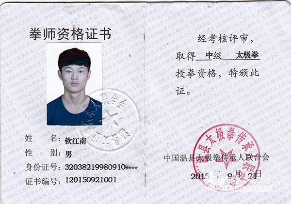 2013年在温县武林大会上获得太极大刀一等奖,拳一等奖。在学拳期间,取得了优异成绩。