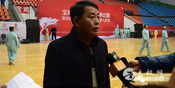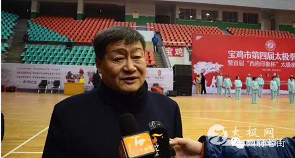开幕式上,市太极拳协会会长张中林、陕西一鼎置业公司总经理乔敏致辞讲话,宝鸡市委常委、副市长马赟宣布大赛开始!  今日沐冬寒同习太极拳,明朝迎晨曦共谱新华章!开幕式后,宝鸡日报、华商报、宝鸡电视台、广播电台、腾讯网等数十家媒体采访了主办方张中林会长和乔敏总经理,分别就宝鸡市太极拳及太极文化的普及推广、未来发展、西府印象文化旅游景区传承太极文化等方面逐一介绍。