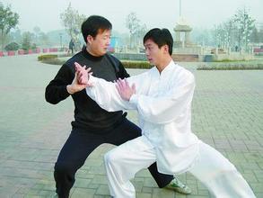 太极拳在技击上的效用极为奥妙,其他拳术或多或少要以力取胜,而太极拳则主要是以巧取胜。太极拳应敌,主要靠“化”与“发”,在每个圆圈形动作中,都包含着化守和发攻两个方面。而功夫越深,这个圆圈也就越小。太极拳家能把外力引尽使之落空,乘对方攻而未返、展而未收一刹那之间,乘虚运用发劲,使对方失去重心而倾跌,其关键全在于准确地审度时机。《打手歌》云:“掤捋挤按须认真,上下相随人难进。”又云:“彼不动,己不动;彼微动,己先动。劲似松非松,将展非展,劲断意不断”;“动急则急应,动缓则缓随。”可见太极拳与一切凭蛮力与敌拼搏之武术不同,主张舍己从人,后发先至,凭智与功力克敌。 太极拳技击原则 一、以静制动:太极拳之静,乃动中之静,包括心理与生理两方面。心理之静,指任敌千变万化,我只以镇静应之。惟心静才能分明敌劲之来龙去脉,我才能乘其虚而攻之。在瞬息万变的技击情况下,我应始终保持自身重心的稳定,此即生理之静。在保持自身静的同时,应千方百计破坏对方心身的平衡,以利我之出击。以逸待劳,劲不虚发,是以静制动原则。 二、以柔克刚。太极技击系用随敌劲伸缩而不含抵抗之柔劲,它对任何加于我之力,抱定不顶抗态度,而是予以走化,使之落空,然后引出对方弱点,运用合力的原理发劲,从而收到以柔克刚以小胜大的技击效果。以柔克刚之理在于:刚劲是有限的,以刚应刚,则力弱者败;柔劲是无限的,敌力无论如何强大,我均以柔劲化之,则敌力于我何用? 三、以顺避逆。太极拳运动由无数圆圈组成,圆运动以逆来顺受技法避免了敌加于我的任何直接打击。因直来之力与我之圆相交,我旋转使力成斜角而分散,减退之程度与斜角之大小成正比,故走化甚省力;我还用粘随把敌套入我之圆圈,使其手足如被网所缠缚,进退 不得。太极拳之圆圈运动奥妙无穷,但得之非易。初练时大而笨,继则小而活,终则有圈之意,无圈之形,出手尚未见其转圈,敌已跌出,即化与发于刹那间已告完成。 太极拳技击步骤 太极技击之具体实施有听、化、拿、发四个步骤。但首要做到“沾连粘随不丢顶”,我即可用听、化、拿、发以制敌。 听、化、拿、发为太极拳多种内劲中的四种基本内劲,且有密切的相互关系。听敌之劲准确,化敌之劲才能恰当;拿住敌劲之焦点,也就是取得“我顺人背”的机势之际,我运用发劲,可使敌立仆。化劲走弧线,发劲走直线,力省而功巨,是为太极技击之决胜战略。 可见太极拳善于后发制人。敌不动,我无从知其虚实,我先用一虚招把敌劲引出,我即化之、发之。若我之化劲不能达到使敌处于背势之境地,则我继续运用引劲、化劲,直至使敌背势时才用发劲,而收全功。 太极拳内劲之认识 太极拳强谓丝毫不用拙力,着重运用内劲。所渭内劲,就是在练拳申得到的环而无端,周而复始,外柔内刚且富有弹住的劲,这种劲“形不外露,功蕴于内”,故称内劲。太极用劲,灵捷无形,手到发劲,未中之先无劲,既中之后无劲,只在中敌之刹那发劲,疾如闪电,一发传收,敛气凝神,毫不费力。正确用劲为太极技击关键。兹将太极拳主要内劲分述如下:沾粘劲。即不丢之劲。沾粘即粘贴之意,把敌粘住之劲。敌迸我退,敌退我进,敌浮我随,敌沉我松。初练推手时,手臂知觉不灵,犹如木棍,日久感觉渐趋灵敏,由手臂而肩而胸而背,乃至周身皮肤,逐渐生有感觉。有感觉始可沾粘。有沾粘,始可将敌吸住。沾粘劲 为入门初步,此劲不通,难以深入其他之内劲。 听劲。所谓听,并非用耳,而以皮肤之触觉去感知敌劲。故必先掌握沾粘劲将敌紧紧吸住。能沾粘,才能听;能听,才能懂敌劲之变化。听劲之关键在于松腰腿,敛气凝神,做到松、柔、沉、静、稳,否则无从准确听敌之劲。 化劲。化劲中须含沾粘劲和掤劲,否则不能化。机枢在腰而不在手、肩,否则是谓硬拨,非真太极拳之化劲也。其要点全在我顺人背,须有往复折叠和进退转换,使敌无由知我劲路,从而达到使对方处于背势的境地。劲不可化尽,化尽则我之沾粘劲易断,而去势随之远矣。又不可过早或过迟,太早未到,无有所化;过迟则敌劲已着,化之无益。运用化劲最恰当的时机是敌劲将出而未全出、将至而未全至之际。化之得势,发之才有效。 发劲。为太极技击中攻敌之内劲。习发劲之初,当先知劲路。发劲须制敌这“根”。人之全身,足为根,身为枝,头为叶;人之上身,肩为根,肘为枝,手为叶;人之下身,腿为根,膝为枝,足为叶。拿人发人,先制其根,是取胜的关键。能明此旨,方可发人。发劲必须达到三要点:机势,方向,时间。三者不可缺一,机势,即己势顺敌势背,在对方重心偏离之际。方向,或上或下,或左或右,或正或隅,均须随敌之背而发之。时间,即在敌旧劲已完,新劲未生之时,为最确当。三者俱全,则 ;发人甚易。犹如弹丸脱手,无往不利。发劲时己身应尾闾中正,坐腰松胯,虚领顶劲,沉肩垂肘,气贴脊背,而贯之于肢体,目注对方,勿存疑虑之心,意欲发之于远。此方得太极发劲之妙谤。 提劲。提即上提拔高之劲,用沾粘劲拔敌之根,使其重心倾斜。提的方法全在腰腿,非用手提,手提则重而笨,易被人发觉。提时桩步须稳,丹田气松,虚领顶劲,敛气凝神,用腰腿劲向上沾提,方向、距离、身法、;步法,处处与对方凑合,方能奏效。 掤劲。掤劲在推手中甚为重要,运用时前臂与胸部须保持一定距离,功夫越深,距离越小。无论左