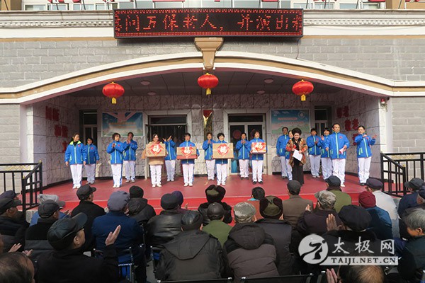 1月31日下午,春节来临之际,宝鸡市武术协会杨式太极拳研究会会长白惠霞;副会长罗继香、伊广献、李桂华、闫玉英、任捷、夏秋霞、张茹良、孙宁果、韦晓燕、黄翠香;副秘书长周巧玲和教练员们一行50余人来到宝鸡市渭滨区中心敬老院,给五保户孤寡老人拜年、送温暖,为这里的老人们送去节日的慰问品及诚挚的祝福。 此次“献温暖”活动由副会长伊广献、副秘书长周巧玲共同主持,会长白惠霞做了热情洋溢的致辞和新年祝福;敬老院郭院长致欢迎辞,对宝鸡市武术协会杨式太极拳研究会慰问老人表示衷心的感谢! “尊老爱幼”一直是中华民族的优良传统和美德,老人,一个社会的弱势群体,在漫长的一生中,经历了人世的风风雨雨,坎坷的日子里,他们所渴望的不仅仅是安逸的生活,更重要的是对他们的理解,杨拳研究会教练组成员,不仅给老人们带去了蛋黄派、沙琪玛等慰问品,还给老人的生活增添了一丝光彩,给老人那孤独的心带去一丝安慰,研究会成员顶着寒风,为老人们表演了他们精心准备的文艺节目。 太极拳、趣味武术、段位拳和段位对练、舞蹈、太极扇、歌曲……表演紧扣老年生活,老人们看的激动投入。时间悄悄的过去了,慰问活动和表演结束了,但是我们敬老爱老的活动永远不会结束。 夕阳无限好,只是近黄昏,我们真诚地希望老人们能够开心,能够健康长寿。从我做起,关爱老人,帮助老人,理解老人,拿出实际行动,为那些无助的老人撑一片蔚蓝的天空,让我们的世界充满爱。 白惠霞做了热情洋溢的致辞和新年祝福、研究会送去节日的慰问品 敬老院郭院长致欢迎辞 副会长闫玉英、黄翠香段位拳对练 宝钛社区合唱团团长李明琪演唱《报答》 教练组趣味武术表演 宝钛社区舞蹈队载歌载舞敬老院 太极扇行云流水 董宝兴 李明琪为我们演唱 歌曲(领袖情怀) |