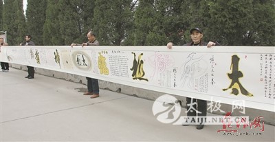 焦作市太极拳书画院集体创作的17米长卷,以字画结合的方式展示太极拳各流派风格特点。 图为该院副院长霍秉志在给作品《共享太极》加盖印章。 焦作市太极拳书画院会员经常开展创作交流活动 用水墨丹青来宣传太极拳,用象形书画来表达太极拳,用形象简洁的艺术语言来揭示太极拳的哲理与奥秘……一群年逾花甲的书画爱好者聚集在一起,把对太极拳的理解和热爱化作浓墨,挥洒笔端。他们就是焦作市太极拳书画院的会员。 近日,记者走进位于焦作市博物馆院内的市太极拳书画院,去领略书画艺术与太极拳所碰撞出的火花。 焦作市太极拳书画院成立于2008年,如今有会员30多人,其中年龄最大的79岁,最小的也有56岁,平均年龄65岁。会员中除了家住市区的人外,还有武陟、修武、孟州等县市的书画爱好者。对书画艺术与太极拳的共同喜爱,让他们走到了一起。 太极拳书画院院长殷全贵,今年已75岁,系河南省书法家协会会员。他自幼爱好书法,25岁开始习练太极拳。学拳半年,他原来虚弱多病的体质便明显改善,从此和太极拳结下不解之缘。退休后,他全身心投入以书法为载体的太极拳研究和创作中。 数十年书法与拳法兼修,殷全贵深谙笔墨挥洒顿挫与拳路阴阳捭阖之间的相通之处,他由此把中国书法艺术中的形意兼备、动静相间与太极哲理相结合,不期修古、不法常可、独辟蹊径,探索书画融汇、书法与象形字融合的新路,成为我市太极拳象形书法第一人。 在市太极拳书画院,记者见到了殷全贵创作的以陈式太极拳老架一路第七式为基础的《白鹤亮翅》象形书法作品,见到了表现老架一路第十八式的《青龙出水》字画作品,还见到了多人共同创作的17米图文并茂书画长卷《太极拳六大门派》、60米真草隶篆书画长卷《太极拳六大门派》…… 据介绍,市太极拳书画院成立8年来,已创作太极书画作品1000余幅。为了更好地发扬推广太极拳文化,殷全贵和会员们带着作品到过多届中国焦作国际太极拳交流大赛上展览,到过省运会、全国老年人太极拳交流大赛赛场展览。殷全贵创作的书法作品《太极魂》,在第六届海峡两岸书画名家作品展中获得金奖。 表现太极神韵的书画作品,因形象生动、意境深刻,引起太极拳爱好者的广泛共鸣。许多人“闻鸡起舞”,在字画作品前就练起拳来。陈式太极拳“四大金刚”陈小旺、陈正雷、王西安、朱天才均称赞这些书画作品揭示和表现出了太极拳文化的真谛和拳理,与殷全贵等促膝长谈,交流心得体会。 近年来,市太极拳书画院的许多作品不仅纷纷被国内各地太极拳爱好者收藏,而且被美国、德国、英国、俄罗斯、马来西亚等国家太极拳界人士所收藏。 为弘扬和传播太极拳文化,市太极拳书画院还经常组织会员走进社区、广场,开展义写活动。同时,该书画院关注时代进步与社会发展,结合国家大事开展创作。象形书画作品《舞》被收入省人大常委会、省委宣传部合编的《迎党的十八大——助推中原经济区建设书画展》中。 交谈中,殷全贵等人对太极拳这一民族文化瑰宝的热爱与赞美之情溢于言表。多年来,他们以宣传和推广太极拳为己任,所创作的太极拳书画作品全部对外赠送,而太极拳书画院的房租及笔墨纸砚装裱等消耗材料则由个人承担。他们希望市有关部门把太极拳书画创作纳入太极拳整体宣传的组成部分,以便让他们更充分地发挥余热和专长,全身心地投入太极拳书画宣传之中。 |