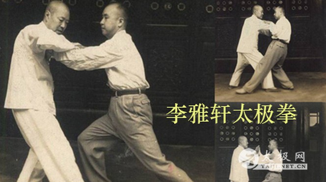 我年轻的时候常随先师表演太极推手、大捋及抹角行步、散手以及武当太极对剑、三才对剑。当时我二十多岁,由于也算刻苦,身手还算矫健,步伐也还轻快。先师当时已是七十多岁,但对起剑来,推起手来,仍然身手矫健异常,有神威不可逼视之感。尤其脚下之轻灵,可谓龙行虎步,衣袂飘飘,翩若惊鸿,脚下快而无声。而我等虽勉强跟随,两腿虽也快速跟进,但不免触地咚咚作响,处处受制,与先师之步法轻妙绝伦,完全是两回事。 先师传拳时除强调大松大软外,首重脚下太极步法的练习。一般人练太极拳也讲迈步如猫行,但由于传授者腰胯以下未真正彻底松开,行步时未顶起头来,塌下胯去,所以走起步来,迈不出大步,而且脚跟后滑,并美其名曰“弓步时后脚跟可以向后调整”,为他的这种出步找借口,真是差之毫厘,谬之千里!全不知太极拳之步其根在脚,脚跟一动,劲力全消的道理。如若勉强跨大步,势必猫腰撅屁股,出脚沉重如秤砣触地,咚然有声。故练出之拳架,姿势不优美,更说不上雄伟之气势。先师所传之拳架,要求步幅宽大而迈步又轻灵沉稳,确需下一番苦功夫。 先师所传太极步法练习有两种,一种为慢步练法,要求迈步时要有虚无之气势,要顶起头,拔起背。他说:“太极拳步法之情形,如出右脚时,必先收全身之重量徐徐移于左脚,然后徐徐提起右脚。在提右脚时,如脚腿从水里泥里抽出来的情形。右脚这样子提起来,而后虚虚落地,慢慢踏实,其落地踏实用劲的情形,如将脚腿徐徐插在地下去;提左脚的情况与提右脚时的情况同。按照这样子的练法,日子久了,脚步才来得柔弹而稳固有力,身体才能经得起冲撞,不至被人推出或打倒。在身势与步法动作的形式上,是要有龙行虎步,身形相配的神气。这就是说,身心内外要全部完整,全身力通气通。否则,就不是练太极拳的意思了。”这是第一种慢步练习的要领。 第二种练法为行步快步练习。这是在第一种练法有基础后的必不可少的练习法。两腿要异常轻灵,要如像绳儿吊着一样的松沉,落步轻,发步快,所谓步随身换,忽隐忽现,进退神速,灵妙异常。太极行步运动起来,可谓来去如穿棱,忽隐忽现,矫若游龙。脚下只见步伐移动,而来去无声。这种步法练好以后,运用于推手散手,可谓拳来不知,脚去不晓,打人于不知不觉之中,将发挥很大的威力。 先师散手时,多以手挥琵琶为开手势,右腿微屈,左脚尖虚虚点地,伺敌之动向相机而动,虚虚实实,变化多端。他曾与牟祖绶打散手,以右手虚晃其面,伊以手来接,先师忽以太极快步法左脚向左横跨两步以披身右踢脚之腿法击中对方左胁,而力透右胁,疼痛多日始愈。 先师在世时说:“步法腿法在太极拳中至关重要。”并说:“现在很多太极拳师不重视练腿,腿踢不高,步迈不大,老态龙钟,举步蹒跚,只可讲讲拳,友谊推推手,如遇实战则不行此非太极拳本身之过,乃不知练太极拳手眼身法步之过也,学者不可不慎。”我想,要想在太极拳方面学成些功夫,先师所传的太极步法不可不学,不可不练,否则,名不符实也。 跟李雅轩先生学拳后对推手的感悟跟李雅轩先生学拳后对推手的感悟在跟先师(李雅轩先生)学拳的时候,我前面有很多跟着老师先学了很多年的师兄,年龄也比我大得多。他们推手的水平高低不齐,给我的感觉是:有的师兄手很松沉,推手后有舒服感,感到对我推手水平的提高有好处,就像老师说的“某某有点我的……”;有的则很犟硬,嗑嗑碰碰,又拨又拉,推得不舒服,不愿意和他推,觉得和他推手自己的手都搞硬了。老师对我说:“你以后可和谁推,不和谁推”,又说:“他们功夫比你大,和某某推不会把手推坏,和某某推,他的手硬,会影响你,把手推硬了,以后改都改不过来……”。当时,我甚感奇怪,为何都是打这套拳,都是老师教的,何至于一个手松柔,一个手挺硬,而老师也是说他们没能松下来,没有松透。 当时年纪轻,对老师的话也没有去细细感悟,直到老师临终时,只是说一切都在拳上找,松软是太极拳的宝贝。但当时未必全以为然,想的是怎样能多掌握一些推手的技法,认为拳只要天天练就行了,老师的话也未引起足够的重视。后来老师去世了,自己也开始教学生,一晃又是几十年过去了,我的学生也是一大批,程度也是参差不齐,学拳的时间也是有长有短;我也是那样教他们,他们也每天在练拳,在练推手;但推手也是有的有味,有的没味,有的松沉,有的挺硬,有的几年就练出松沉的感应,有的练了几十年,推手仍然是硬梆梆的,没有圆活之趣,此事引起我的思考,其原因安在哉? 忽忆起先师临终之言:“一切都在拳上找,松软是太极拳的宝贝”,才恍然大悟症结所在,深信先师言之不诬也。学拳之初,学推手之初,如果不能坚信大松大软、松净、松透的练法,脑子里始终有用力使劲的意识,则松沉之劲不能逐渐而成!这种意识使劲道半松不松,硬柔混杂,其如煮饭,火力不透则米不熟,煮成夹生饭,其后怎么煮总不熟,总不好吃。特别是初学推手时,多不敢完全放开,完全松开,因放开以后怕挨打,所以自然有一种一接确之后即顶抗以求保护自己的本能反应;由于这种思想,久而久之在两手两臂骨质肌肉之间,形成一种犟劲的胚胎。这种胚胎一旦形成,就如夹生饭一样很难软化,所以即便练拳多年,由于这种犟劲作怪,出手也是硬梆梆的,缺乏柔韧和灵感。 其实,在太极拳老论中就说得很清楚,要在不丢不顶之中去讨消息。怎样才能不丢不顶?