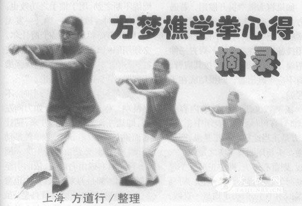 方梦樵(1904-1960)是近代徽商代表人物。上世纪三十年代初在上海市国术馆先后从吴鉴泉、靳云亭学习太极拳和形意拳,并且和唐豪是至交。曾偕同唐豪调查过明朝程冲斗的身世,并访求清初王征南的内家拳法和文献。下述文字是1966年从方梦樵日记中摘抄的心得体会(日记毁于文革)。文中,吴鉴泉、赵寿口、孙润志等都是当时上海市国术馆教师。丈中这些教师的话,不同于那些玄虚而模棱两可的古奥文字,是学习太极拳不可多得的珍贵资料。 吴鉴泉师云:“凡搂膝拗步后脚向前迈进时,前脚不可立起;倒撵猴亦然。身要正,手要斜,所谓手斜系将掌背对正鼻尖,非向左向右之谓。玉女穿梭姿势,手肘须对人之中部,彼抓我肘腕即翻肘挤对方腹部。凡各项姿势,肘腕均无高过头颅之理,否则即失中正之道。又云手之后手不可越过前掌,按出时由肩至臂至指掌须呈一半圆圈,则腰脊之劲可达指端,脚步不在大而在正。大则不易收拢,正则可以照顾四隅。未按时,坐后腿,前足尖翘起,足尖一落地,身手随之按出,其势不可挡。倘脚步偏于左右,则无效矣。以拳先击人,宜先试之,对方一伸手即转腕采之,转腕之圈不在大,圈大则丢离,反授对方以隙,周身上下左右皆然。胸部被按时,先略仰而后沉腰化之,不必手助,对方即立足不稳,盖即引进落空之意。若此时更用揽雀尾捋之,虽对方力大,又何所用?”又云:“太极拳之劲犹如秤砣,不问对方之力大小,均可使其随我起落,但求用得其所尔。彼此右手握拳,手背相粘,对方用力即转腕采之,采之不动,随手发之。发劲之隙,意须向其肘下擦去,劲即到达对方腰部。若用力过当,劲反回来,推人不动矣。凡推手以使对方足跟浮起为度,不必用蛮力,否则不易领悟太极拳之妙用。尔等推我足不能浮,由于未得其当尔,苟得其当,一样能使余跌出,不必以我为无敌也。对于粘随二字之精义,说得明白点,即与对方接触后,顺势略避其锋,立即粘随而进,并非不用力,不抵抗之谓。又推手时,也可说真打时,浑身僵硬易倾跌。但若只一部分松开,或有任何一部分不能松开,均属无益。能够浑身无一处不松,不能粘随,不丢不顶,是必可观矣。” 吴先生教手挥琵琶式,只将双掌向上向外稍侧,再抽右掌和左肘齐而已,比赵寿郝、孙润志诸先生所教右掌须随左掌挥一较大圆圈,颇觉繁简不同。闻赵孙二先生说,练太极拳要先求开展,后求紧凑,是以初学圈子贵大。吴先生则云:“初练架-子,首宜姿势准确,倘圈子太大,不中规矩,及易流为浮滑。如知繁简不同也殊途同归,要在善学尔。” 吴先生说:“太极拳虽有许多步法,不外从马裆步化出。马裆步胸和腹呈直线,两胯和肩呈直线,尾闾和头顶呈直线。变换弓箭步也然,其它动作也无不然。野马分鬃固属弓箭步,坐直仍是马裆步;高探马、左右分脚虽坐实一腿,若双脚落地仍为马裆步;扇通臂和单鞭仅右掌不同,此外并无分别。总之太极要尾间中正,处处以马裆步为主体,自可中正矣。” 赵先生寿邮推手时,有时采敌之右腕至左膝按右肩;有时胸部被按时将仰跌,忽沉腰向左右捋,以化敌劲;或喉部被叉,同样采捋以化敌劲,有时五指朝下,掌心向外虚粘敌腹。诸如肘腕被挺捉,乘势往回收,无不化险为夷,使敌人跌出。总之,不外不丢不顶,随来势引退,使敌人力不着实,至对方力尽乘势跟进,或采或捋或挤按,无不如意。在此不容毫发之时,须懂劲而后方能得势。 赵寿邨先生推手,满手圆圈,先采后发,对正方向,百不失一。又靠人用长劲,转身用腰劲,才能得机得势。 吴鉴泉言:“挤按时,先进身,后进手,发人易远。” 推手时,每胸部被按,虽含胸沉腰,终不能立足。试以右掌护胸,左掌粘其右臂,俟其按近,胸部略一含胸右捋,立即向前向右捌劲,对方忽弹退,我也不觉费力。始悟收即是放,退须即进,不能以退让为能事。 同学某,嬲吾推手,数合后试以掌粘其臂,彼方缩臂欲逃,吾伺机而进,应手倒退,左右皆然。当发劲时并未用力,对方欲缩,掌心已先觉,找清虚实发动,轻脆异常。 赵寿邨先生指点:“于化去对方按手后,可右捋或左采,如不得势,更可用按劲,计有三面可发。”又云:“练推手时,劲要沉要长,久而气足,发人自远。” 孙润志先生教推手时为予言:“化挤劲后,可捌其两臂而按其胸。被捋时手宜松劲,免牵动全身。被按时宜松腰拔背,使胸腹呈一直线,以求尾间中正。倘不能中正,必失重心而倾跌。”余自省良久,觉胸部尚前俯不能正直,强之使直,即不得劲,孙君谓系少练架子之故。乃知练架子要时时注意含胸拔背、松腰、分虚实各要义,否则劳而无功。 初步推手,当捋挤按时,双方用长挤、按劲。若向左右两方采捋,胸腰肩臂有一不松,即会跌出。据云,初学如此人手,最易进步。 同学某君,用斜飞式试向我进攻。我用沉劲击之,不意其左肘在我右乳下,因沉势太重,反将沉劲引之自己胁上,肋骨被震伤。嗣据赵师言,彼用斜飞式,只须以搂膝拗步,轻轻化之,不必沉肘,致自己吃亏。试之果然。 赵师言:“按人须先用手轻轻粘住,徐徐按去,俟其退无可退时,再行发动。不论挤按均用此意,否则不能发人。” 问赵寿邨先生,太极拳中之白鹤亮翅为何使用?答:“接人右臂两手各上捋,使敌人脚跟浮起,再用搂膝拗步姿势发人也。”又问肘底看捶用法。答:“人以右拳击我,即以右手接拳置左肘下,沉肘角击其脉门,并以左拳冲击其颏。”又问如封似闭用法。“右拳被人采定时,即以左手出右腕下,接住