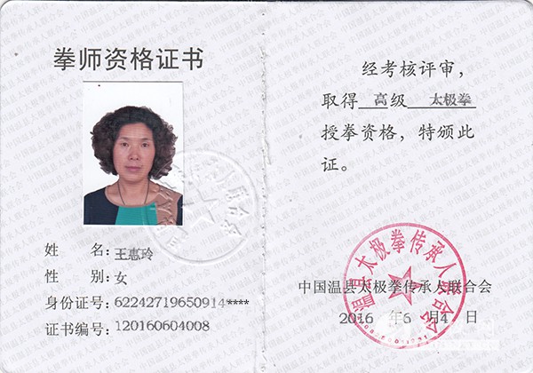 本人2001年习练太极拳以来,刻苦学习,拳式沉稳,舒展大方,是国家一级社会指导员,曾多次参加甘肃省市级太极拳、太极剑比赛,多次获奖。 2005年定西市首届运动武术比赛中,荣获太极拳三等奖。 2014年5月甘肃省社会体育竞赛荣获太极拳一等奖。 2014年5月甘肃省社会体育竞赛荣获太极拳剑二等奖。 2014年5月甘肃省社会体育竞赛荣获太极拳对练三等奖。 2014年8月定西市传统武术“奇乐杯”大赛荣获太极拳金奖。 2014年8月定西市传统武术“奇乐杯”大赛荣获太极拳位段银奖。 2014年8月定西市传统武术“奇乐杯”大赛荣获集体金奖。 2016年2月参加第五届甘肃洮河香道文化节武术大赛优秀奖。 2016年4月师从陈氏太极拳十二代传人刘建华师傅习练陈氏太极拳。 |