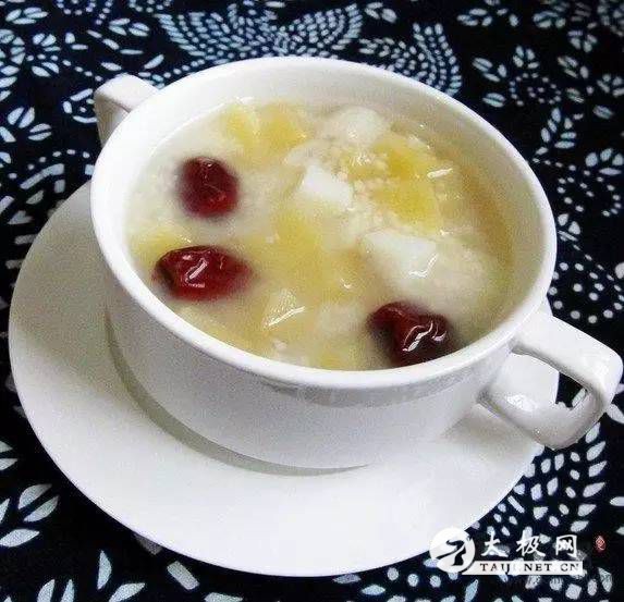 苹果300克,金橘15个,胡萝卜100克,蜂蜜适量。前3味洗净,切碎,榨汁用,将果汁入锅煮沸,调入蜂蜜即可。 早晚温服。具有健脾和胃、理气化痰的功效。 2.苹果山药汤