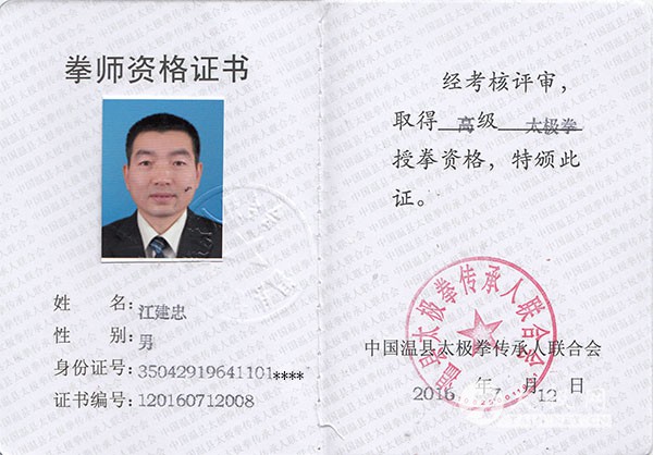 本人从小起热爱武术,崇尚中华传统武德。1982年起开始习武,主要学练过南拳、洪拳、查拳、少林罗汉和五行八法等拳术,并时常习练桩功、打坐、气功等功法。20世纪90年代起酷爱并开始学练太极拳,先后学习过24式简化太极拳和陈氏56式太极拳、杨氏太极拳等;2006年加入福建华武俱乐部。2009年起正式学习陈式太极拳,2010年1月拜陈氏太极拳大师陈有则为师,成为陈氏太极拳第十三代入门弟子,系统学习并娴熟掌握了陈氏太极拳老架一路、二路,太极刀、剑、枪、太极球,太极推手等。本人在国有企业上班,因时间关系,仅参加过两次国际(全国)武术大赛,获得佳绩,获得“2010中国陈家沟太极拳邀请赛”男子D组陈氏太极拳老架银牌和优秀运动员称号;获得“2013年第七届华夏南少林武术大赛”男子D组陈氏太极剑、陈氏太极刀两枚金牌、陈氏太极拳老架银牌并获本届大赛个人全能第三名。 自1982年起,因担任班级文体委员,武术培训班班长,单位武术俱乐部领导,陈氏太极拳入门弟子、福州尊古陈氏太极拳馆教练等,独立执教经历有十多年,并经常协助师门执教,具有较丰富的教学和训练经验,为推广和普及中华传统武术做出了应有的努力和贡献。本人现今为福建省武术协会会员,具备武术中级教练资格证书。 |