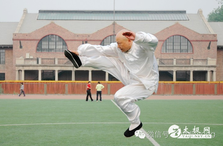 只有夯实坚固的地基,才能建起高耸的大楼。同理,基本功是提高太极拳技能的基础。基本功,可以扩展肩、胯、脊椎等各大关节的旋转范围,长期坚持习练,能防治中老年易患的颈椎病、腰椎病、肩周炎和膝关节增生等外在筋骨之病。同时,根据中医心主血、肺主气、肝主筋、脾主肌肉、肾主骨的理论,通过基本功外在筋骨活血练气的作用,能条件反射地改善和增强人体内脏的功能。我就是每天早晨坚持不懈地习练基本功,我做正压腿时,脚尖可挨着下颌;做侧压腿时,脚尖可挨着太阳穴,踢脚可过头顶。现在我已过不惑之年,手脚灵活如孩童,脏腑气盛如青年。基本功减缓了我外在筋骨皮衰老退化的进程,基本功增强了我内在精气神的功能,基本功使我身体各器官的功能保持了老而不衰的状态,所以说,基本功是养生保健的基础。 若是反之,只打太极拳套路,而不练基本功。随着年龄的增长,韧带开始硬化,肌肉开始萎缩,骨关节面的的软骨开始硬化,大脑中枢神经的传导和反应开始下降。这样,人体就出现了关节活动范围受限,韧带失去弹性,肌肉失掉了力量,神经反应迟钝等衰老症状。这样,人体就不具备太极拳的武术专业素质了,太极拳拳式手、眼、身法、步的动作也就做不到位了,太极拳套路也就演练不了。所谓“打拳不练功,老来一场空”,其中的“空”是指这样习武不能获得抗衰养老的功效,看起来你虽然天天比划拳脚,可是你与常人一样老态龙钟,笨手笨脚,这就是“空”的真意。 二 基本功是拳式动作的基石 对常人来讲,你让他做个“二起脚”(陈氏太极拳拳式),他肯定做不成。因此,我们只有通过基本功的锤炼,才能塑造出一个崭新强健的体魄。从柔韧、耐力、速度、力量、反应等方面得到了有效提高,这些专业身体素质是确保拳式动作准确无误的基石。通过柔韧素质的训练,使我们的筋抻长了,骨关节拔开了,做“下势”这类动作时就容易了。
