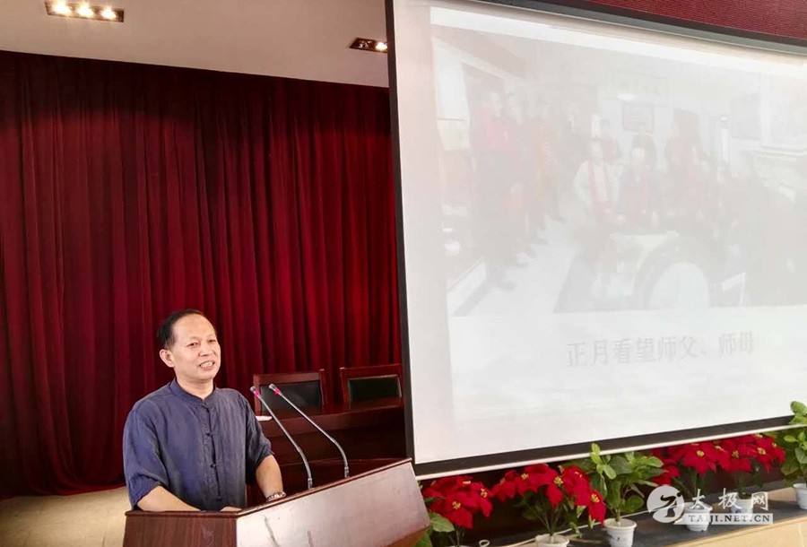 在生活节奏越来越快的现代社会,人们在繁忙工作的同时也更加关注养生健身之道。为了丰富广大人民业余文化生活,普及健康养生知识,弘扬国学文化,8月6日上午,杨氏太极拳第五代传人、中国武术七段宋斌先生,受吕梁地区杨氏太极拳协会的邀请,在吕梁会计学校三楼报告厅举办“杨氏太极拳”专题讲座。 吕梁市人大副主任、总工会主席、太极拳协会主席张保福,阳泉同门师弟任春林亲临讲座现场,讲座现场空无虚席,全场爆滿。 宋斌,男,汉族,出生于1964年3月18日,山西汾阳市人,国家武术七段,一级裁判,师承杨氏第四代嫡传人杨振铎大师。现任国际杨氏太极拳协会-广州杨澄甫太极拳中心主管,上海斌惠文化传播有限公司-斌惠堂总教练 宋斌先生自幼酷爱武术,38岁正式拜杨氏太极拳第四代嫡传人、中国太极拳名家之一杨振铎大师为师,系统习练杨氏太极拳、剑、刀、推手等,深得大师真传。三十年来苦练不辍,在拳法、拳理上颇有造诣。他演拳循规蹈矩,松静自然,独具静态之妙;教拳耐心细致,讲解深人浅出,深受学员欢迎;与其学拳者遍布大江南北,堪称桃李满天下。 讲座上,宋斌先生就“杨氏太极拳的源流和其技术特点”进行讲解:杨氏太极拳隶属于中国传统太极拳的五大流派之一。其特点:立身中正安舒,拳架开展大方,动作松柔缓慢,行动速度均匀,招式虚实分明,周身圆活连贯,腰身使动四肢,换位逢转必沉,体用效果突出,套路适应广泛。推手端正严密,宁静而不妄动,无招无式,发人与无形;擅以劲击劲,内劲松沉绵软,化劲精微巧妙,发劲坚刚雄浑。简洁实用,搭手即制对方,令其进退维谷,不能自已;出手时又能快如闪电,挨哪打哪,接手即发,令对手瞬间跌出。 除了师父杨振铎大师,宋老师在讲座中还提到了自己的启蒙授业恩师段英莲、王文夫妇二人,正是他们在宋老师习拳之初,给予了很大的帮助和教导。以及杨氏太极拳第五代嫡传掌门人杨军老师,自2009年起,宋斌老师每年至少一次前往国际杨氏太极拳协会的总部-美国西雅图参加杨军老师主办的主管培训班,并受邀前往意大利、多米尼加共和国、马来西亚等地交流学习,更加深入、系统、科学地学习、掌握了杨氏太极拳、剑、刀,尤其是推手的技艺。 在讲座中宋斌先生并将其多年来对太极技击及太极的生活化渗透等研究心得,以及对太极拳修炼的切身体会一一与大家分享,并从传统文化诞生太极拳、感受太极之美、太极修炼之道”等方面进行了详细讲解。为让大家更直观的感受一招一式、一意一念,更是和弟子周小云进行示范演练,偌大的会场掌声此起彼伏。 宋斌先生演讲深入浅出,旁征博引,为大家讲解了杨氏太极拳基本套路到八法应用,为广大太极拳爱好者进行了精彩的讲解和现场示范,生动地诠释了博大精深的太极文化,使学员对太极拳有了更深的认知和了解,与会者无不觉得受益匪浅、意犹未尽。为进一步推进太极健身运动,推广太极文化,搭建了更好的交流平台。 此次讲座,宋斌先生共围绕太极拳的真谛谈了五个大问题:一是九大关节放松法。二是杨氏太极拳手型手法,步型步伐,身型身法的分解和整合,杨氏太极拳是在中国大地上土生土长的内家拳,它至少有三大核心价值,即技击为根,健身为用,文化为魂。三是推手中的劲法体现。习练太极拳首先要宏观把握三要点,要微观突出练好“松”,还要整体把握太极拳推手八要点。四是技击攻防中的应用,五是答疑解惑,复习巩固。 太极拳的真谛何在?太极拳练的是精气神,修的是品行思,求的是韵境道。 本次讲座在欢乐、和谐、掌声不断的气氛中结束。宋斌先生以丰富的知识、翔实的资料和铿锵有力的语言完成了本次杨氏太极拳讲座。最后寄语大家:让我们通过太极拳圆梦,升华美丽人生,给力国家民族复兴崛起,走向人生更高境界。