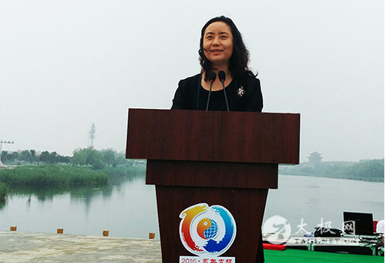 “第十三届中国邯郸国际太极拳运动大会推介大使”证书颁发仪式 第十三届中国邯郸国际太极拳运动大会将于今年9月26日至29日在河北省邯郸市举行。本次大会以“中国梦 太极情 邯郸行”为主题,届时将有近2000名国内外太极拳爱好者参会。 日前,在邯郸举行的新闻发布会上,活动主办方宣布了上述消息。本次大会由国家体育总局武术运动管理中心、中国武术协会、河北省体育局和邯郸市人民政府主办,河北省体育局武术运动管理中心、河北省武术协会、邯郸市委宣传部、邯郸市体育局、永年县人民政府、邯郸学院、广府生态文化园区管委会承办。 在新闻发布会上,国家体育总局武术运动管理中心副主任张玉萍指出,太极拳的本质是运动,太极拳发展的动力在竞技,太极拳的真谛在和谐,太极拳追求的宗旨是健康。举办太极拳运动大会,就是要为各位太极拳爱好者提供一个展示风采和水平的舞台,不断提升太极拳发展的水平,加快太极拳的普及和推广。同时她也表示,大会筹委会和中国武术协会已经向海内外太极拳组织和个人发出了邀请。 邯郸国际太极拳运动大会筹委会副主任、邯郸市人民政府副市长侯华梅表示,本次大会将树立“节俭办会,注重实效”的理念,充分发挥邯郸太极拳资源优势,把本届太极拳运动大会办好、办出特色、办出水平,办成太极拳界的精品、名品大会;并积极搭建对外交流平台,进一步弘扬太极文化,展示邯郸风采,提升邯郸形象,促进文化、体育、旅游等相关产业发展。 大会筹委会在发布会上还向邯郸市杨式太极拳专业委员会会长杨志芳等6人颁发了“第十三届中国邯郸国际太极拳运动大会推介大使”证书。 邯郸是一个历史文化底蕴深厚、具有太极文化特色的城市,下辖的永年县也是杨式和武式太极拳的故乡,享有“太极拳之乡”、“太极拳圣地”等称号,在太极拳的推广普及和发展中起到了非常重要的作用。自1991年到2014年,邯郸已连续举办了十二届太极拳大会,从2008年开始,大会正式定名为“太极拳运动大会”。