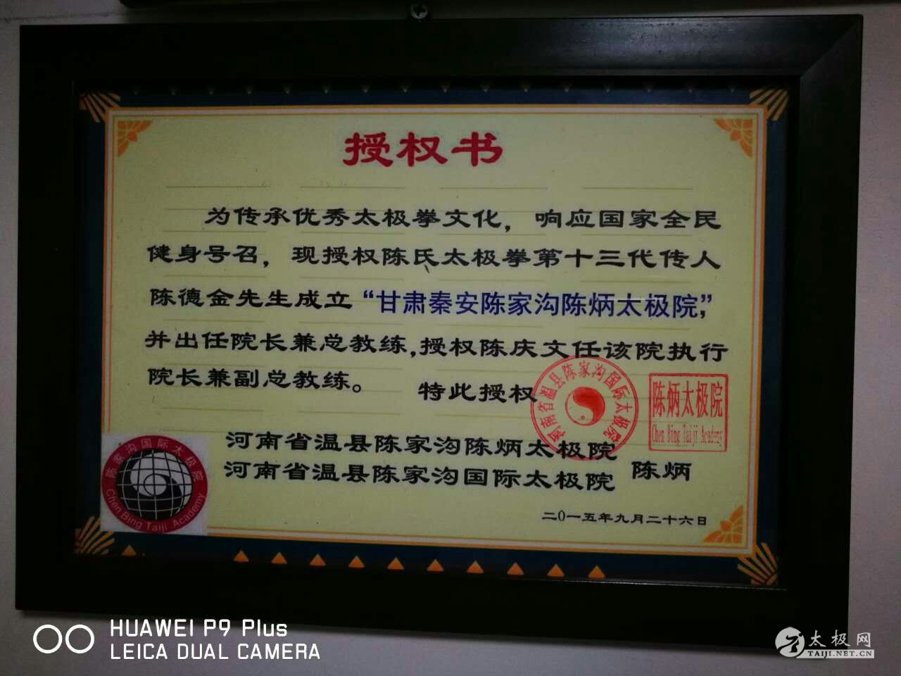 院长陈德金是陈炳老师的入室弟子,陈式太极拳第十三代传承人,师门排行第28 ,中华太极拳传承人联合会授予:高级授拳师。河南省一级拳师。中国武术六段。中国武协会员。中国武术段位制指导员。中国武术段位制考评员。国家级社会体育指导员。国家级武术二级裁判。陈家沟太极协会永久性会员、秦安县分会会长。陈家沟国际太极院外派教练。秦安县太极拳协会副主席。甘肃秦安陈家沟陈炳太极院院长兼总教练。现已有二十六位入门弟子。均成为陈式太极拳第十四代传承人· 2014 年被陈家沟村委会授予:非物质文化陈式太极拳优秀传承人”称号。2014 年和2015 年在天水市体育总局、天水市武术协会和天水市教体局举办的两届伏羲武术贻拳道大奖赛上,为特邀专家评委。被授予优秀教练员和裁判员。天水市体育总局,天水市教体局,天水市武术协会授予优秀武术馆校。2015 年中国武术协会对他创编的《 陈式太极拳28 式》 做了审定。由国家体育总局武术研究院监制出版了《中华武藏》系列教学光盘《陈式太极拳新架28式》 书籍即将于读者及太极拳爱好者见面。