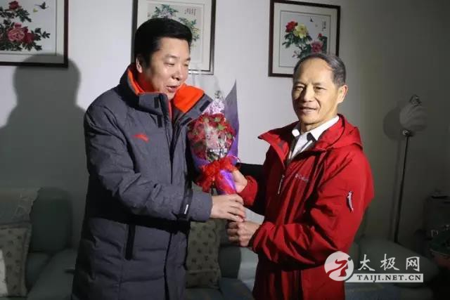 田苏辉在向徐毓茹(武术九段)介绍陕西武术的新气象 (太极网报道)2月9日,国家武术队总领队、陕西省武术协会常务副主席、西安市武术协会主席田苏辉一行专门看望了8位陕西省市武术界德高望重的老武术家,为他们送上了节日的祝福。 原省武术队高级教练高西安与田苏辉亲切交流 省市武术协会一行首先看望了为我省历年武术事业做出巨大贡献的徐毓茹、高西安、白文祥三位退休武术高级教练。这三位武术前辈,先后培养出了赵长军、张仙萍、楚凤莲、马文国、吴雅楠等我省各个时期的武术代表人物。 原省武术队高级教练白文祥接过了田苏辉送上的鲜花 陕西省武术协会常务副主席田苏辉见到他们首先对他们为陕西武术做出的突出贡献表示感谢,田苏辉说:今天我代表国家武术散打队总教练、省武术协会主席张根学老师前来看望大家,是想把陕西武术目前发展的大好局面向大家通报。大家都看了今年的央视春晚,国家武术套路队80位冠军选手一齐亮相春晚舞台,不只是给全球华人展现了中华武术的独特魅力,更是向大家传递了我们振兴、传承中华传统文化的决心和信心。 三位原武术专业队高级教练都表示,陕西武术在张根学主席和田苏辉副主席的带领下,近年呈现出了高速发展,他们感到非常高兴,只要现在国家有需要,他们都会义不容辞,全力以赴。 陈全忠太极拳学校成员与省市武协慰问人员合影 93岁的陈式太极拳十九世传人陈全忠老人,这天还在西安陈全忠太极拳学校里精神抖擞地带徒传艺,见到田苏辉常务副主席,陈全忠老人忘不了他常说的那句话:“让社会上多一位太极拳习练者,让医院里少一位病人”,但他的这句话已经被田苏辉常务副主席抢过去说了出来,两人的手紧紧地握在了一起。田苏辉恳切地表示我们省市武术协会今后主要的工作就是做好服务,做习武者的“店小二”。 104岁的黄江天老拳师的身手,谁能够猜得出他的年龄? 在西安市纬二十六街的景辰家属院,住着一位104岁的老武术家黄江天老人。黄江天老人生于1014年,耳不聋眼不花,当与前来看望的同志说高兴了,还会拉着他的徒儿比划几招。老人多才多艺,养成了非常好的生活习惯,每天练拳写书法成了他的必修课,实在令人感慨。见到省市武协同志,黄江天老人特别高兴,他拉着田主席的手叮嘱说:“今后中国的武术要传承下去,就全看你们了!” 李堃老拳师向大家展示了刊登有他的照片的《陕西英才》杂志 田苏辉说:你们能够健康长寿,就是我们武术人最大的财富,我们一定不会辜负你们前辈的重托,让中华武术造福全人类健康。在慰问现场,西安市武术协会常务副主席方秀敏还为黄江天老人送了西安书法家的所书的八个大字:尊老敬贤、传承美德。 97岁的张世德老人见了田苏辉有说不完的话 86岁的红拳老拳师李堃老人是一位喜爱学习的老人,他家的沙发背后插满的18件兵器惹人眼目,李老现在还担任陕西英才国术研究会会长之职。谈起中华武术的攻防价值,李老真是有他独到的见解,他当场演示的连续攻防招术招招紧逼,令人眼花缭乱目不暇接。田苏辉常务副主席称赞老人拳不离手的英雄本色,称赞这些老武术家为省市武术打下了坚实的基础,是我们今天能够取得大发展的有力保证。 94岁的红拳老拳师刘存和与陕西省和咸阳市武术协会同志合影 参加当天看望活动的省市武术界领导还有:陕西省武术协会副秘书长肖关纪、杨晓波,陕西省武术协会综合发展部副部长乌福娟,西安市武术协会副主席朱永金,咸阳市武术协会主席毛尔建,陕西英才国术研究会理事长王建民等。 本站编辑:太极网陈超 |