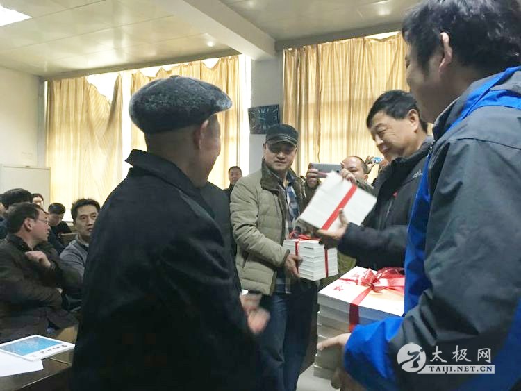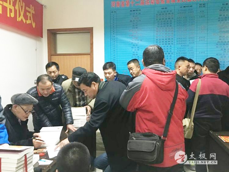 焦作市体育局、焦作市武协、焦作日报社、焦作电视台、福建昕影影业的有关负责人参加了会议。 陈小旺太极拳术研究会副会长赵庆保、张喜欢、司爱卿、王占平、党国俊、张军、毛春善以及大师弟子们、陈氏太极拳爱好者参加了会议。 会场上座无虚席 陈小旺太极拳术研究会会长杨建平会长在致辞中说:陈小旺大师是陈氏太极拳的典型代表,陈家沟陈氏第十九世太极拳嫡宗传人,中华非物质文化遗产传承人。在他老人家60多年的拳坛生涯中,无论是在太极阴阳哲学思想的感悟上,还是在拳术的研究及传播上,都有新的建树,为太极拳走向世界做出了卓越贡献,并把当代陈氏太极拳推向了一个高峰。 杨建平会长代表陈小旺太极拳术研究会向作者王道奎先生表达了崇高的敬意,对《陈小旺传奇》一书的出版发行表示了衷心地祝贺! 焦作市武协张治远主席致辞,他高度称赞了陈小旺大师在陈氏太极拳传承中的贡献,是开拓者、引领者,是一个伟大的武者,功不可没。他肯定了陈小旺太极拳术研究会2016年工作成绩,希望研究会在陈小旺大师言传身教中,继续努力,为焦作武术发展做出更大的贡献。 福建昕影影业贺词中说,陈小旺大师是当代武术界的传奇人物,期待与陈小旺大师及其研究会深度合作,为陈氏太极拳的发展贡献力量。 作者王道奎老师讲述了完成书稿的辛劳和喜悦。王老师已接近耄耋之年,为了这部书,辛勤耕耘,不舍昼夜,倾住了无数的心血和汗水,将自己对陈小旺大师的崇敬,对太极拳的热爱,对写作的执着与积淀全部献给了《陈小旺传奇》这部书,令人肃然起敬! 王道奎老师神采飞扬地结束演讲,他说春天来了,陈氏太极拳的春天来了,让我们一起拥抱春天吧,并为大家唱了一首老歌《时代像一支飞箭》。 作者王道奎老师向焦作市体育局赠书 向焦作市武协赠书 向陈小旺太极拳术研究会赠书 作者现场签名售书活动开始 这位太极拳爱好者一下买了五本,请王老师签名纪念 王道奎老师不辞辛苦地为每位大师弟子和太极拳爱好者签字留言 《陈小旺传奇》一书的面世,让人们深入了解了一代宗师陈小旺曲折坎坷的人生经历及其家族太极人生的传奇故事,他的思想,他的人格,他的精神,犹如一盏明灯照亮了世人之路,那就是真诚、仁爱、宽容、健康,激励习练者,引导正能量,大力弘扬太极精神。 责任编辑:太极网小田 |