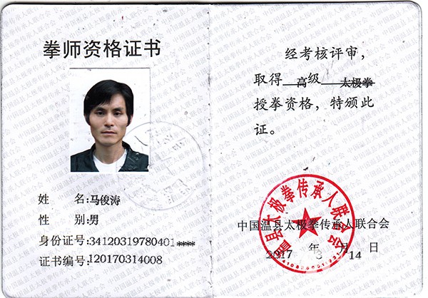 马俊涛,男,籍贯:阜阳,大专文化。马俊涛现任安徽省阜阳市陈伯祥拳术研究会常务理事,阜阳市跆拳道协会会员, 武术散打协会会员,国家一级教练员,二级裁判员,武术散打和跆拳道总教练员,临泉武联盟道馆馆长,临泉小天使艺术学校校长。临泉传统弓箭协会秘书长,武联盟协会理事长,临泉两仪拳研究会秘书长,自幼习武,1986 年随民间武师练习心意拳,两仪拳,形意拳,1992年投师少林武僧释果军、释果亮练习少林拳,武术散打。1994年在安徽省国家体育优秀运动员训练中心武术散打队,1995 年在阜阳市体育运动学校武术散打队,1996年参加安徽省第八届全民运动会武术散打项目获得团体第一,个人第一。1996 在安徽省国家体育优秀运动员训练中心跆拳道队集训。1997年跟随启蒙老师刘正学习陈式小架太极拳,后拜入王田忠老师门下学习陈式小架太极拳至今,在师父王田忠的精心指导下刻苦练功,细心揣摩,对陈式小架太极拳有一定的体会和领悟,深得王田忠老师的拳法精髓。同时还严格遵循师父王田忠为人谦和、淡泊名利的处事理念,深得师父的厚爱、师兄弟们的认可。在提高自身功夫的同时,还积极参与陈式小架太极拳的推广及活动。 拳照 |