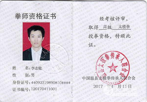 2009年,开始学习陈式太极拳,学习内容主要含:老架一路、老架二路、新架一路、太极刀、太极剑、新架一路、太极推手、太极十三杆等; 2010年,首次参加广东省传统武术项目锦标赛,获太极拳二等奖,其后多次参赛并获奖; 2011年,随师任助教,协助教学; 2013年,业余独立教拳; 2016年,参加广东省武术套路锦标赛,获得太极短器械(太极剑)第一名。同年,任华南师范大学武术协会大学城校区太极教练。 李志敏-太极剑欣赏 李志敏-太极拳欣赏 |