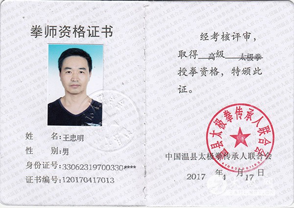 王忠明,男,1970年3月出生,嵊州市仙岩镇人,从小喜爱武术,1987年起跟当地拳师学习了易筋经及少林拳等武术。2007年开始跟当地老师学习陈式太极拳、太剑等,自2011春节起每年追随恩师陈家沟国际太极院院长陈炳先生正式系统学习传统陈氏太极拳。2014年10月5日有幸拜入陈炳老师门下,成为陈氏太极拳第十三代传人。经师父陈炳授权同意,2015年在浙江省嵊州市设立河南省陈家沟国际太极院嵊州市分院(嵊州陈炳太极院),现任院长,成立以来,迅速在嵊州全市各单位.学校推广正宗陈式太极拳,得到广泛好评,有嵊州市国税局陈式太极队伍,嵊州辽湾水库太极队,嵊州宾馆太极队,嵊州保罗国际大酒店,嵊州昂利康制药有限公司等一大批有影响的企业单位加入太极队伍,还有嵊州莲塘小学.嵊州青少年宫等教育单位进行定期少儿太极拳培训,得到老师家长的认可。 2016年多次与安徽广德陈炳太极院、浙江永康陈炳太极院、浙江临安陈炳太极院、江苏宜兴陈炳太极院等兄弟单位,开展了友好交流活动。 通过开展交流活动,开阔了眼界,学习了其他院校的特色和精华,取长补短,不断努力提高。 2017年3月27日应第十四届中国嵊州国际书法朝圣节组委会邀请,嵊州陈炳太极院率队参加在大会开慕启程仪式前的太极表演,为节日的成功举办添上一抹亮丽色彩! |