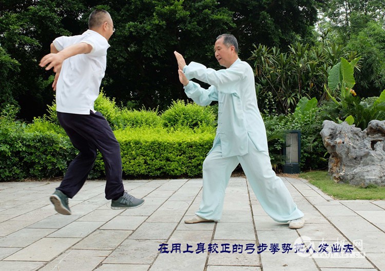 配文的图片,其中有两张分别是《弓步的拳势1》(图中用杨澄甫宗师的拳照来制作)、《弓步的拳势2》(图中用我恩师林墨根的拳照来制作)。从两张弓步拳势的示意图看出是上身较正的“左玉女穿梭”和上身较斜的“右搂膝拗步”,是练上身较正的弓步较好还练上身较斜的弓步较好?其实各有妙用。 有人查看没见前辈有“斜中寓正”的说法,今人说的“斜中寓正”是误导人,如果身体偏斜,重心就会不易稳定,果真如此吗?我们首先搞清楚怎样是“斜中寓正”?以《弓步的拳势1》为例,我对此理解为上身较斜的弓步姿势寓(寓的字义为寄托或暗含的意思)有“立身中正”的内涵和功夫。各人对“立身中正”的理解认识不同是正常的探理研拳,不妨以拳证道吧!我叫弟子们按《弓步的拳势1》的技术要求体验过,脚膝腿与胯腰斜向贯通用劲,为了守中,肩关节的垂直线不宜超过身前大腿的半长,这样的夹角有利于前实腿的松腰落胯,以推桩守桩的形式对练印证,觉得身体重心较为稳定、下盘较为稳固,合适用在诸如“搂膝拗步”那样情况的拍胸击打,唯一不足之处是不便于边沉边转的用法。上身较斜的弓步是发劲击打的动态拳势,身斜多少随发劲击打的实际情况而定。拳书讲解“右搂膝拗步”的用法是“如乙若用左手以直打来,甲可以用右手搂住乙的左膊,甲左手绕自膀尖处,伸指掌拍乙胸前。要掌心去劲,右足弓式左足蹬劲。”按照这样的招式,选用上身较斜的弓步就比较合适顺势发劲,推打的威力大一点,打得对方向后下失重的跌出去。 《弓步的拳势2》是上身较正的弓步,前腿松腰落胯、后腿松腰塌胯的松沉气力垂直于地,用意念引导两脚分别斜向撑住胯根,弓步有沉中有撑的技术要求。上身较正的弓步,有利于中定势的动态变化;用于拳式定势,收效较好。拳书讲解“左玉女穿梭”的用法是:“如对方向我上部来犯,我以右手臂上掤其来手,并以左手掌向其当胸击之。”按照这样的招式,选用上身较正的弓步就比较合适顺势发劲,推打的威力大一点,打得对方向上腾起失重的跌出去。只要符合技术要求和练法正确,上身较正的弓步和上身较斜的弓步都有“立身中正”的内涵,根据实际情况选用合适就好了。 对于太极拳初学者而言:把“立身中正”理解认识透了,对于什么时候上身正一点或上身斜一点就会心中有数了。何谓“立身中正”?我认为:“立身”是指走架打手之前要调整好身体姿势,重在处理协调好意形诸方面的矛盾冲突;“中正”重在内涵,指身体内部的对称、平衡、沉稳,非简单的形态之谓,目的是守住重心中线站稳。倘若立身不中正,那么劲力就不能顺达,圆转变化就不会轻灵。“中正”是一成不变的吗?我看不是,它要随着技法的需要而变化,随着守中功夫的变化而变动。在“望海远游”的新浪博客看到了一篇《杨澄甫宗师中晚年拳照对比》博文,该文说:“杨澄甫青年图片中只有上步七星有撅臀之嫌,我觉得可能是为出功夫,蹲身较低,身体前倾以维持重心所致。但仔细看,拳意很好,大有一抬手即将人放出之势。前倾、后坐均是太极拳应有之义。练时为了拉筋脉,一条线逼出内劲。打时为了争取空间、时间。前倾,则泰山压顶,后坐,则江中磐石。”我认为,太极拳在不同阶段有不同层次的追求和练法,辩证的看待屁股突出的问题是较为客观的。“立身须中正安舒”的练法是要正确协调形、气、劲、神之间的和谐统一,周身内外一家了自然会“安舒”,其目的是为“八面支撑”服务,也是为了静态拳势和动态拳势的时时中定。对于入门阶段而言:“立身中正”是凭啥立身而得中正?是凭虚领顶劲、松肩垂手或沉肩坠肘、含胸拔背、松腰塌胯或松腰落胯、尾闾下垂、气沉丹田、开胯圆裆、挺膝松踝、脚地相吸等而立身,是凭肩与胯合、肘与膝合、手与足合、尾闾下垂或翘前守中的调整手段而立身,是凭支撑八面、守住重心中线的功夫而立身。有些人把“立身中正”理解成“走架打手过程中始终保持身体正直”的看法,我认为是不切合走架打手的实际情况。 以上系本人初窥太极拳门径的一孔之见,认识肤浅,仅供太极拳初学者参考。意在抛砖引玉,愿与同道一起探讨太极拳真谛,为弘扬国粹尽一份力量。 责任编辑:太极网安安 |
