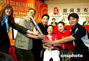 图为发布会上桑兰(右三)、李素丽(右四)、桑雪(右二)等火炬接力手展示火炬。中新社记者:郑萍萍 奥组委副主席蒋效愚介绍说,6月8日早晨雅典奥运火炬将到达北京。这是奥运圣火首次来到首都北京,奥运圣火传递对激发社会各界的奥运热情,展示改革开放以来新中国、新北京的时代风采,表现中国人民昂然向上的精神风貌,塑造北京良好的国际形象具有重要的意义。作为此次火炬传递的组织者,北京市政府、北京奥组委精心准备了活动方案。 据介绍,目前初步确定的传递路线起点为人民大会堂东门,终点为颐和园,经过崇文区的天坛、明城墙遗址和龙潭湖公园,再到东城区的天安门广场、故宫北门、钟楼北桥,经由朝阳区和西城区的主要路段,最后到海淀区的清华、北京大学,终点到达颐和园。整个路线穿过北京崇文、朝阳、东城、西城和海淀5个城区,全长55.6公里,沿途将有精彩的群众文体活动,当晚将在颐和园举行隆重的庆祝晚会。 明天上午,雅典奥运火钟将乘“宙斯”号波音747包机到京。目前,首都机场安全保卫工作已准备就绪。北京是继悉尼、墨尔本、东京、汉城之后雅典奥运火炬传递的第五站。 火炬手传递顺序初步确定 2004年雅典奥运火炬北京传递路线今天正式公布,火炬手顺序也初步确定。这是北京奥组委在6月7日上午召开的新闻发布会上透露的信息。 蒋效愚说,火炬手的顺序也已经初步确定,第一棒为于再清,最后一棒为姚明,根据需要可能还会有微调。火炬手有来自各行各业的代表,有武警国旗班战士阮野,有全国劳模李素丽、许振超,有著名运动员杨凌,有文艺界的代表宋祖英、刘欢等,他们都各自在自己的岗位上做出了出色的贡献。根据传递活动安排,148名火炬手和35名护跑手将按规定时间在指定地点集结,之后统一乘坐火炬车到达各传递点开始火炬传递。 雅典奥运火炬传递新闻发言人克里斯汀(Kristin)女士介绍了雅典奥运圣火全球传递情况,并简单介绍了2004年雅典奥运会筹备进展。此次奥运圣火传递赞助商可口可乐和三星公司的代表也相继发言。 来自北京市及北京奥组委的相关领导,火炬手代表孙茂芳、桑雪、桑兰、李素丽、赵杰等到新闻发布会现场,现场还展示了奥运火炬和此次传递火炬手服装。来自国内外媒体的约150名记者参加了此次新闻发布会。会后蒋效愚、克里斯汀等回答了记者的提问。 ■雅典奥运火炬北京传递沿线活动各处活动一览 崇文区 传递活动开始后,传递队伍首先进入崇文区。崇文区拥有令崇文人骄傲的“崇文三宝”——天坛、明城墙遗址、龙潭湖公园,崇文区的活动也围绕着展示“三宝”展开。 在祈年大街北段,将有300人举行“秧歌迎圣火”活动。祈年大街和大都市街的交会口,悬挂“崇文三宝”的户外宣传画。 火炬往南进入天坛公园北门,近200人手持小旗欢迎圣火。公园东门广场约有300人表演“集体踢毽子”。火炬沿途经过体育馆路,到达国家体育总局——这是崇文区体育园区。在幸福大街中段、崇文区政府门口悬挂中英文彩色标语“崇文人民喜迎雅典圣火”,区政府工作人员和附近居民在门口欢迎圣火到来。 火炬经过南、北花市大街,到达明城墙遗址公园中段。沿街居民300多人手举旗子夹道欢迎。 火炬手从东便门角楼下立交桥,离开崇文区。 东城区 东城区安排“三线三点”迎接火炬传递活动。“三线”为(天安门广场——台基厂南口;朝阳门立交桥——故宫北门;钟楼北桥——黄寺大街),主要由沿线各街道做好环境整治和布置。“三点”主要安排在展示东城区风采和特色的地点(王府井南口东方广场西侧、朝阳门立交桥西北角、皇城根遗址公园五四广场)。主要包括以下几个主题: 在王府井南口东方广场西侧,举行百年金街奥运风主题活动。300人的太极拳演练阵形,周围穿插青少年轮滑表演。背景是具有百年历史的中华第一商业街——王府井,展示现代化建设成就与民族传统的和谐之美。 在朝阳门立交桥西北角,举行奥运社区火炬情活动。内容以东城区东四街道奥林匹克社区居民为主,240人表演《健身球操》、《橡皮筋舞》、《健身秧歌》。 在皇城根遗址公园五四广场,举办主题为魅力皇城奥运颂活动。200名京剧票友彩妆演唱。在体现北京皇城魅力的公园中,一群群着彩妆的京剧票友演唱中国传统京戏。 朝阳区 火炬两进两出朝阳区,有两条火炬路线,同时安排一个休息点,分别是: 1号线:建国门——大北窑(国贸大厦)——CBD商务区——京广桥——东大桥——朝阳门(朝阳区火炬传递第一交接终点)。 2号线:黄寺路——熊猫环岛——北四环——奥林匹克国家体育场工地——中华民族园(朝阳区火炬传递第二交接终点)。 一个休息点:国家奥林匹克体育场建设工地。 朝阳区传递路线长,沿途活动也多姿多彩。主要活动有: 1、建国门桥东——日坛路口:举办“我与火炬同行”主题活动。1000名少先队员身穿表演服,在表演区内列队进行鼓乐队表演;300名小学生身穿节日盛装,手持橄榄枝花环和五环旗,站立欢呼。200名中外小学生手持各国国旗和奥运五环旗沿途观看火炬传,迎接奥运火炬进入朝阳。 2、华彬大厦路口:进行CBD形象宣传活动。 路口东南角的钟表花圃,用鲜花组成“CBD欢迎您”字样; 路口西南角大型三角立柱及升空气球悬挂垂幅; 5个身着少数民族服装的小学生各持一彩色花环,组成奥运五环站立在