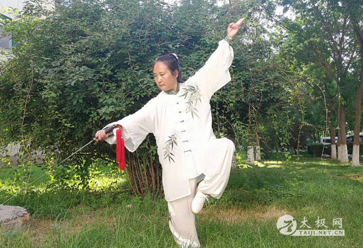 段曲珍参加太极网举办的第三届国际太极拳网络视频大赛,表演杨氏太极剑32式。
