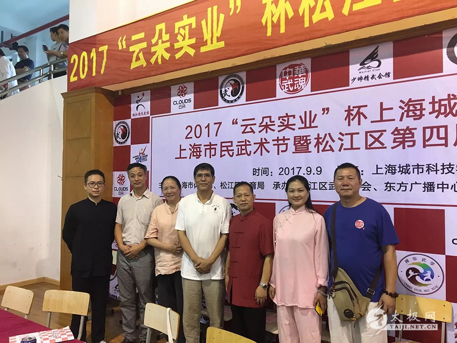 2017年9月9日,在松江体育局领导的关怀下,在比赛组委会的共同努力和筹备下,“云朵实业杯”上海市市民武术节暨松江区第四届武术锦标赛在上海市松江区隆重举行。是日天朗气清,惠风和畅,众多武术爱好者们欢聚一堂,共襄盛举,在松江区掀起一股勃勃生起的武林风。 参与此次盛会的有:上海武术运动管理中心主任、上海武术院院长严辉先生,上海武术运动管理中心主任、上海武术院副院长翟慧女士,松江区体育局局长孔林德先生,原上海体育学院武术系主任、现民族传统体育理论研究中心主任邱丕相先生,松江区体育局副局长秦梓辛先生,中国武术在线金惟良先生,松江区武术协会会长顾泓刚先生,天马论道董事长王雪先生,上海武术院业务科科长梅文源先生,松江区文化馆馆长陆春彪先生,上海市社区体育协会会长张祥泰先生,中国武术七段、杨氏太极第五代传人、斌惠杨氏太极俱乐部总教练宋斌先生,金山区荣欣书院董事长、杨氏太极第六代传人胡海荣先生以及松江武术协会全体领导成员等。 与会嘉宾 开幕式上,更是有各路名家纷纷登场献艺表演,展现各自风采。 松江区武术协会顾泓刚会长带来的终南形意龙形拳,川岳武馆带来的终南形意马形拳,为我们展示了三大内家拳之一形意拳的风采。 由岳阳街道岳之健团队带来了健身气功——气舞,展现了健身气功独特的文化底蕴。