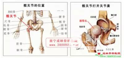 骨盆从正面看大体上是一个上宽下窄的梯形,从侧面看,骨盆略向前倾,女性骨盆的倾斜度大于男性。丹田大抵处于骶骨前面两个髋骨尖相连的位置。 骨盆两侧的中部的髋臼凹进去的地方连接着大腿骨的股骨头。髋臼像是一个轴碗,股骨头的前部呈半圆形,嵌在这个轴碗里,股骨头和髋臼也是由强韧的韧带和筋腱连接在一起。