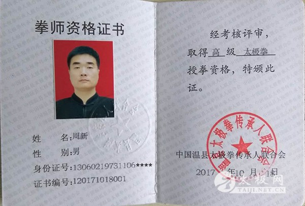 周新,男,汉族,1973年生于河北保定,河北大学毕业,本科学历,学士学位,中国武术协会会员,陈式太极拳第十三代传人,太极拳高级拳师,国际太极拳高级教练,国家康复指导师,太极网保定分站站长,保定陈式太极文化研究会会长。 2017年石家庄马虹杯(全国)陈式太极拳比赛荣获“太极拳金牌,太极剑金牌”。 周新少年时期跟随保定籍全国拳击冠军杨学良老师学习技击,后师从一代太极宗师马虹先生高足、太极名家吕林红老师,深得陈式太极拳和太极剑之精髓。 周新通过多年的勤学苦练,真积力久,功臻上乘,不仅全面继承了陈式太极拳一脉正传,而且在陈式太极拳和太极剑的推广和传承方面不遗余力,做出了显著的贡献! |
