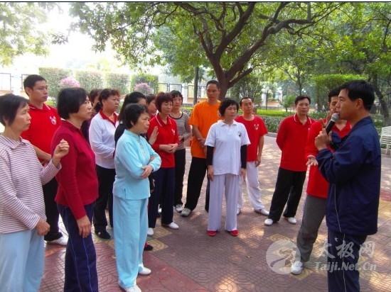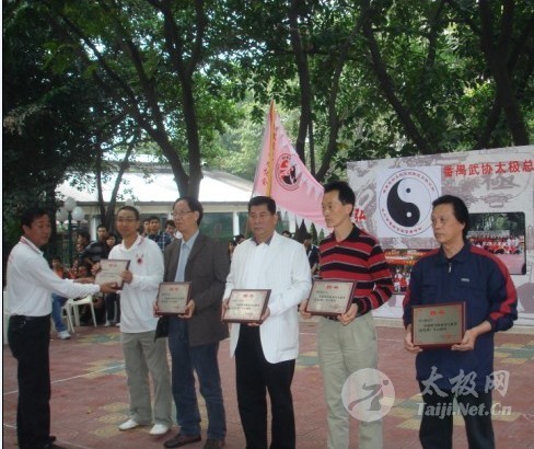 11月26日下午,番禺星海公园举行了陈家沟太极拳(番禺)推广中心的挂牌仪式。陈家沟太极拳推广中心执行主任兼秘书长陈皂罗、副主任张福旺、执行秘书长兼联络处处长张胜利、副秘书长兼联络处副处长陈绍杰为陈家沟太极拳(番禺)推广中心挂牌。他们此行是应陈家沟太极拳(番禺)推广中心之邀。 参加此次活动的本地领导有番禺区武协主席胡健强、副主席谢以仁、朱振林、秘书长李宁耀,以及陈家沟太极拳(番禺)推广中心的教练及学员共200余人。 仪式开始,首先由陈皂罗、张福旺为陈家沟太极拳(番禺)推广中心揭牌。随后,陈皂罗为陈家沟太极拳(番禺)推广中心的谢以仁先生、李宁耀先生、黄家厚先生、谢锐雄先生、欧建荣先生颁发顾问聘书,紧接着执行秘书长张胜利为陈家沟太极拳(番禺)推广中心名誉会长张镇梧、主任徐晖、副主任吴伟东、秘书长周德平、总教练程传中颁布发了聘书。之后,张胜利代表陈家沟太极拳推广中心在大会上作了重要讲话。他说:陈家沟是太极拳的发源地,是太极之根,而番禺则是太极拳生长的沃土,陈家沟太极拳(番禺)推广中心的成立是陈家沟太极拳推广中心的延伸和发展。讲话中,张胜利还明确了陈家沟太极拳推广中心和陈家沟太极拳(番禺)推广中心的紧密关系,并希望双方要互相支持、团结合作、互利共赢,共同创造太极拳光辉灿烂的明天。 最后,张福旺和陈绍杰分别进行了精彩的太极拳表演,他们的表演获得了在场观众的阵阵掌声。 通过这次活动,番禺区的太极拳爱好者受到极大的震动和鼓舞,他们纷纷表示,陈家沟太极拳(番禺)推广中心的成立,是太极拳发源地陈家沟给予番禺的名誉,他们要充分利用这个品牌,把太极拳的事业做大做强。 番禺活动结束后,陈皂罗、张胜利、陈绍杰一行于27日到广州市花都区,看望了在那里开馆授拳的陈志强,并与当地太极拳爱好者进行了交流。  陈家沟太极拳推广中心委派张福旺对番禺中心的教练和学员进行培训 11月26日,陈家沟太极拳(番禺)推广中心正式挂牌成立后,为了尽快提高番禺中心教练的太极拳水平,陈家沟太极拳推广中心特委派中心副主任、八大天王之一,张福旺大师留住番禺,对番禺中心的教练及部分学员进行为期一周的培训,受到番禺中心的高度赞扬。他们说,陈家沟太极拳中心对分中心不仅起到管理作用,更重要的是起到了技术指导作用,真正达到了服务、推广、普及太极拳的目的。