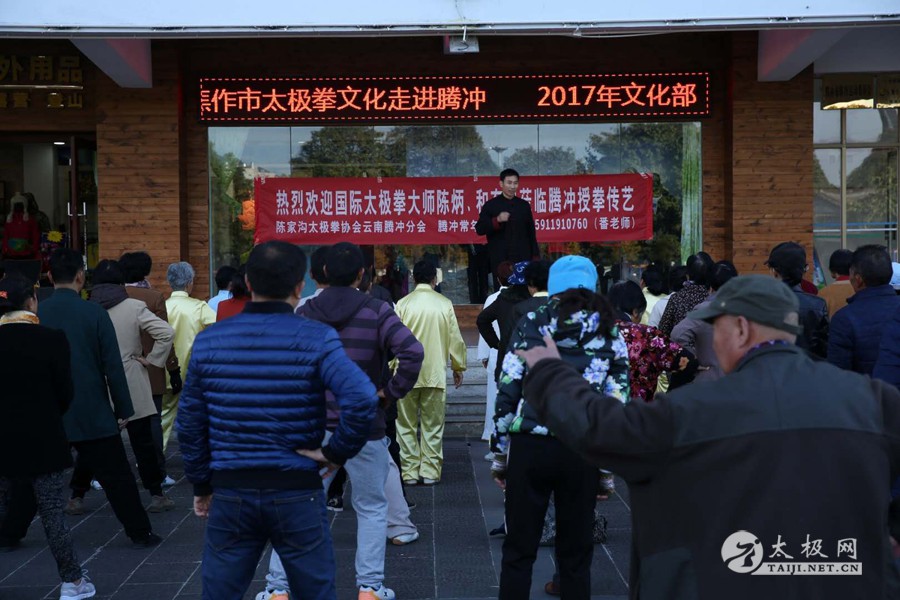 (太极网报道)近日,陈家沟国际太极院院长陈炳、温县和式太极拳学院院长和有禄以志愿者的身份参加了中国文化部、中央文明办共同组织的“春雨工程”全国文化志愿者边疆行活动。参加本次活动的还有陈家沟太极拳协会云南总会会长曾加华以及陈家沟太极拳协会云南腾冲分会会长番再国等。 活动过程中,陈炳、和有禄、曾加华、番再国等几位老师先后登场为腾冲当地近400人次分别进行了陈式太极拳基本十三式以及和式太极拳的教学,学员们纷纷表示受益匪浅,感谢诸位老师们的辛苦付出。 |