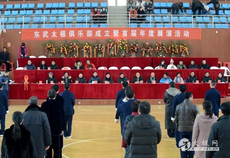 (太极网报道)12月27日下午,运筹已久的和州东武太极聚集本部会员,邀请市县相关领导及南京、马鞍山等周边太极方家,于和县一中体育馆隆重举办俱乐部成立暨首届展演年会。会场布置简洁大方,长幅会标悬挂主席台中央,宣示本部“传承国粹、分享健康、研习太极、修炼身心”宗旨的大红横幅赫然高悬。国家二级社会体育指导员与裁判员、武术五段、县武协及本部负责人吴今朝先生主持年会,会长秦颐女士发表充满激情的讲话。县民政局领导宣读了批复,县体育局长卜训水先生及市武协等部门领导亲临致贺,在充分肯定本部成绩的同时,期望今后在全民健身运动中发挥更大的推动作用。 活动现场 县体育局汪万庭宣读了主管部门和县体育局批准成立和县东武太极俱乐部批复,县民政局局长肖宁宁宣读了核准成立和县东武太极俱乐部的行政许可决定书。县体育局局长卜训水对东武太极俱乐部的成立表示祝贺,并提出希望,希望在太极拳的普及和提高上多下功夫,为全民健身多做贡献。马鞍山市武术协会会长谷和永讲话,对和县东武俱乐部成立表示祝贺并提出希望和勉力。 和县民政局长 肖宁宁 马鞍山市武协会长 谷和永 和县体育局长 卜训水 和县体育局 汪万庭 东武俱乐部会长 秦颐 东武俱乐部 常务副会长 吴今朝 出席本次活动的嘉宾还有,马鞍山市武术协会常务副会长张小刚,马鞍山市武术协会秘书长吴国刚,和县武术协会会长彭继伟,秘书长陈氏太极拳十二代传人胡兴仁,张东武老师入室弟子陈氏太极拳十三代传人陈林忠,张东武老师入室弟子陈氏太极拳十三代传人邹学锋,马鞍山市王西安拳法俱乐部会长黄甫秀。 中国太极拳名家,陈氏太极拳优秀传承人张东武先生及时发来祝贺致词!贺词内容:祝贺今朝!祝贺和县东武太极俱乐部成立!希望俱乐部的成立能够为和县人民身体健康,家庭幸福,社会和谐作出应有的贡献! 和县电视台对东武太极俱乐部的成立暨展演进行了全方位的报道