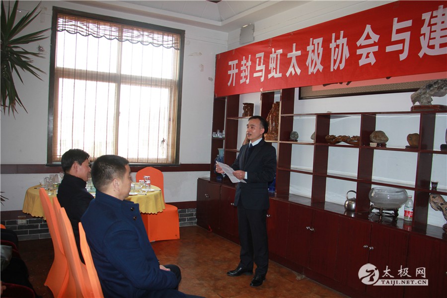 (太极网报道)2018年2月4日,开封陈式太极拳马虹拳法研究会年会于立春之期举行,会长马丙勤与研究会成员欢聚一堂,共话太极,共度新春。参加本次年会的还有来自中国建设银行开封市东部新城支行行长梁晓磊等嘉宾。 活动现场 开封陈式太极拳马虹拳法研究会会长马丙勤新年致辞