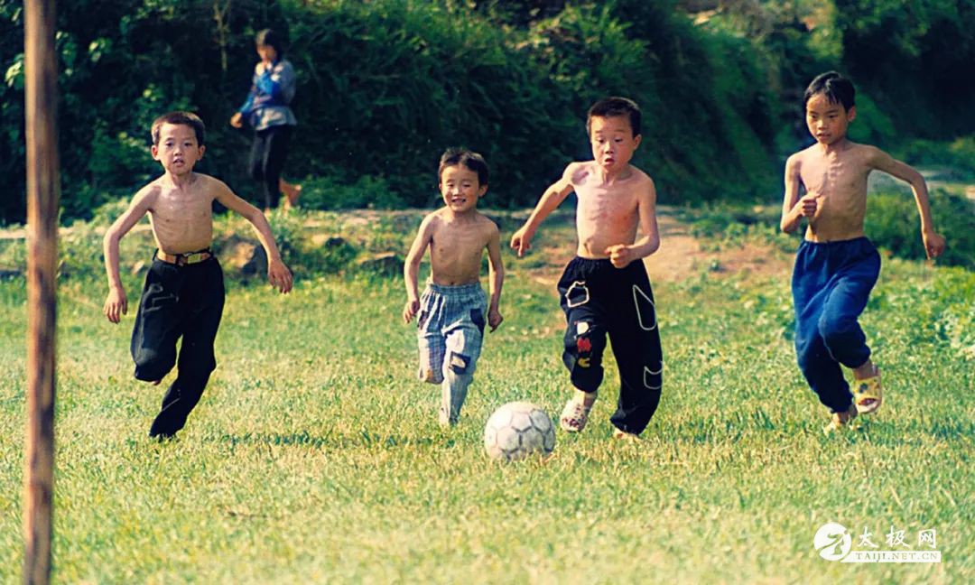 2000年7月,浙江松阳县三都村边空地上孩子们在踢足球 几乎所有的球类运动都有较高的场地要求。一个标准篮球场的面积是420 m2(长28 m*宽15 m),足球场更是庞大到需要4050-10800 m2的场地。看起来要求最少的乒乓球,球台面积虽然只需要4.1785 m2,但是符合标准的场地也至少得达到98 m2(长14 m*宽7 m)。并且,大部分球类运动还需要专门的器械器材(球、球拍、球架等),在物资匮乏、消费凭票的时代,专门生产和购买体育运动器材,绝对是普通人日常需求之外的奢侈品。 而太极拳的优势就在于,它不要求特殊的运动场地和器械,活动范围也不大,只要有空有闲心,田间地头、车间厂房、餐厅卧室,随时都可以练一趟,几乎是零成本的活动。经过简化后的太极拳更是省时省力,比起一套耗时20-30分钟的完整杨氏太极拳,练完简化太极拳仅需5-8分钟,也就是普通人喝杯茶的工夫,简直是一项完美符合群众体育活动要求的运动。 顾留馨自己也说,“我准备编写一套‘太极拳广播操’,初稿以易学、易记、易练,占地不广为原则,以利于在机关、厂矿内推行”。 正是由于脱胎换骨之后的简化太极拳集锻炼、养生、保健、文化传统于一身,太极拳摇身一变,还成了外交大使。