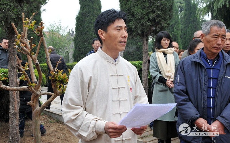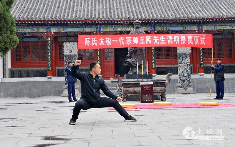王长江老师率众弟子及同仁行鞠躬礼 (太极网报道)2018年4月5日,王雁宗师祭奠仪式于太极拳发源地温县陈家沟太极拳祖祠举行,王雁宗师后辈及王雁传统太极拳传人借清明节为契机,悼念先师,缅怀先师传拳之恩德,借以激励后辈继承先师之志愿,弘扬太极文化。 仪式主持人 王福礼老师向陈式太极拳先祖陈王廷宗师上香 众人集体为一代大家朱老虎致哀三分钟 众人向一代宗师王雁先生纪念碑行鞠躬礼 王福礼老师向一代宗师王雁上香敬酒 王雁之重孙王会战代其父王长江宣读祭文 王雁宗师重孙王会战代其父王长江老师宣读悼念王雁宗师祭文。祭文中缅怀了王雁大师的高尚武德、高超武艺,感念他一生为中国传统武术事业发展所作出的巨大贡献,表达了弟子后辈们对先师无比崇敬之情与心中的怀念之情。同时,王会战表示,用在清明节用祭奠先贤的方式,缅怀前辈,传承发扬太极拳法,踏着先贤们的足迹,传承中华民族传统文化的精髓。 太极大师朱老虎之长子朱堡垒先生讲话 朱堡垒发表讲话,感念先辈传拳之辛劳、祈求先辈佑泽师门,并号召大家团结一致,尊师重道,继承先辈的意志,为传承太极拳、传播太极文化不懈奋斗。广育太极人才,为太极拳事业的发展做出更多更大的贡献。 现场表演 责任编辑:太极网陈超 |