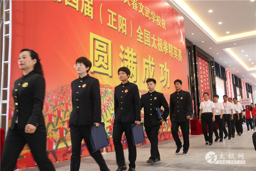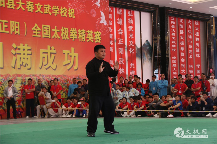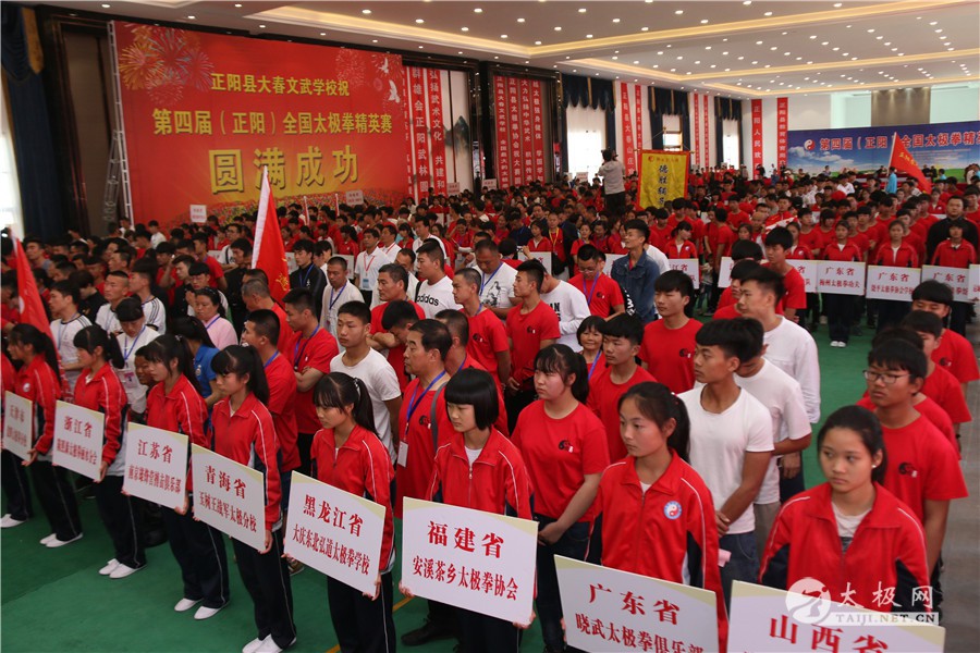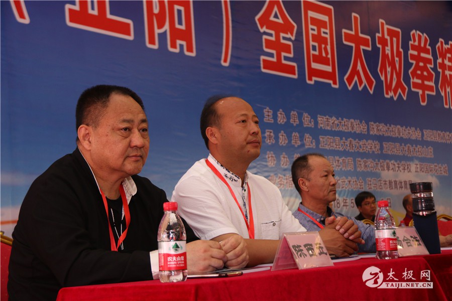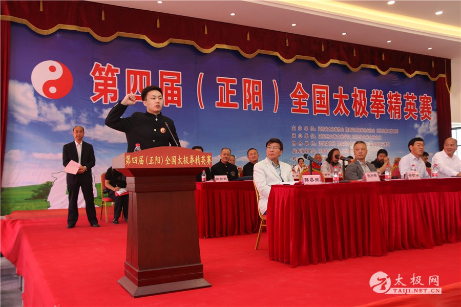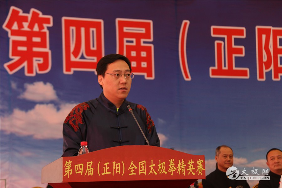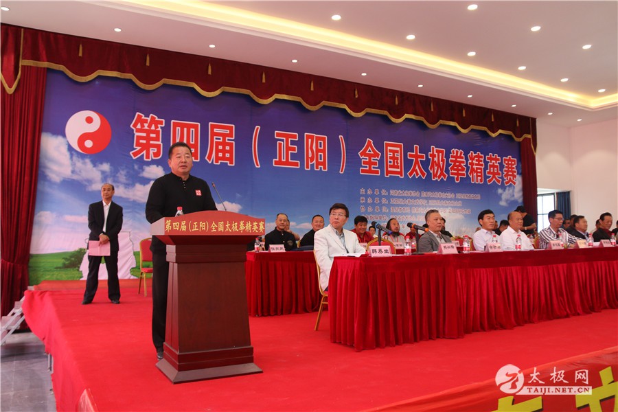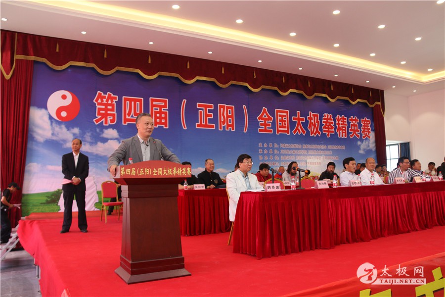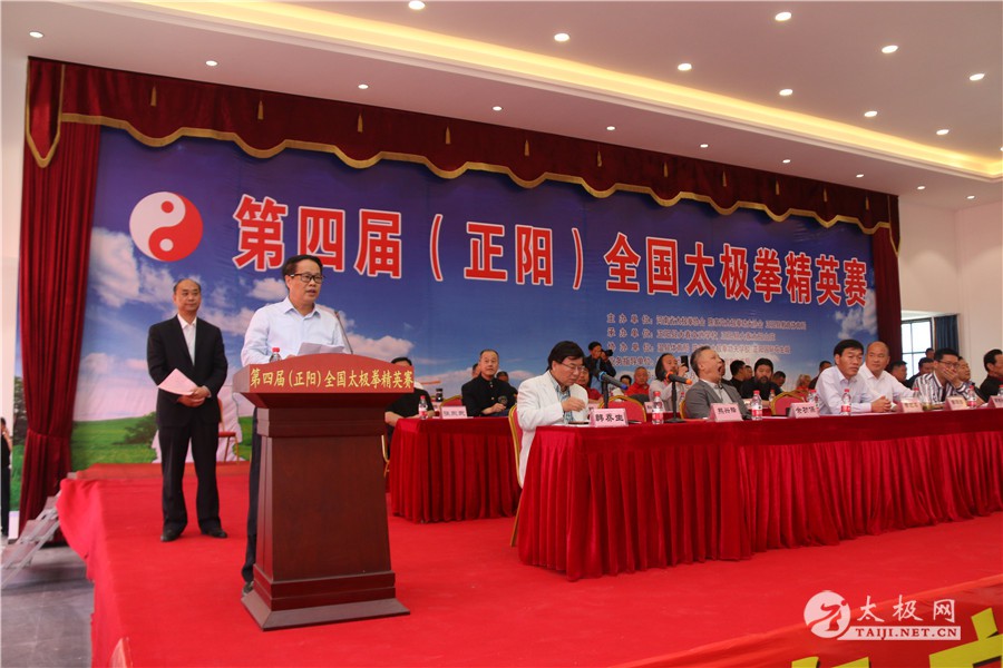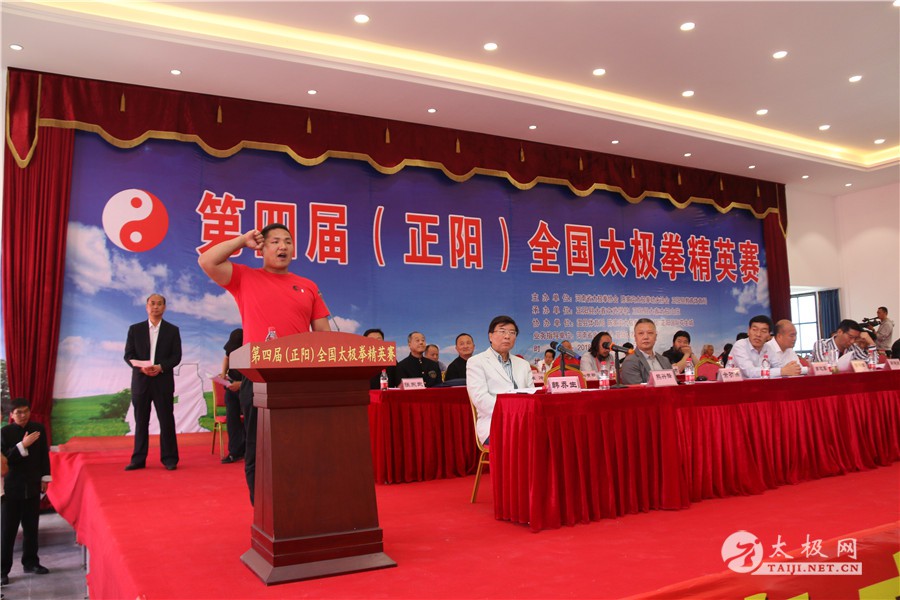 现场嘉宾 (太极网报道)2018年5月3日,第四届(正阳)全国太极拳精英赛于河南省正阳县隆重开幕,来自上海、山东、黑龙江、河北、河南、四川、重庆、浙江、辽宁、北京等地的百余支代表队千余名太极健儿将会在四天的比赛中在赛场上展示他们的太极风采,绽放太极拳的夺目芳华。 央视体育频道著名主持人韩乔生担纲主持,正阳县教育体局局长熊兴锋主持开幕式。出席开幕式的领导及嘉宾有:原中国武协主席张耀庭,原中国公安大学教授、高级教官韩建中,原驻马店市政协主席刘军甫,中原资产总裁岳胜利,河南大学公共体育部主任洪浩。 张耀庭讲话 本次比赛吸引了各大媒体的关注,人民日报社高级记者王霞光、世界太极拳网总编余功保、中国体育报记者蒋亚明、中华武术杂志副主编王涛、华奥星空网(中国奥委会官网)记者刘向前、人民论坛网记者姚胜利、中国网记者李永康、中新网记者李贯阳、河南文艺出版社总编辑单占生、河南经济网记者杨大海、大河网记者陈要逢以及澳门文武中国杂志和香港新武侠杂志等媒体代表出席了开幕式。 裁判员入场 河南省武术协会副秘书长兼办公室主任汤西印、河南省武术协会副主席河南省太极拳协会秘书长陈斌、原驻马店市政协法工委主任刘杰、驻马店市教体局副书记鄢忠伟、正阳县人民政府副县长刘业鹏、驻马店市老区建设促进会会长、驻马店市老体协主席欧阳忠宽、原正阳县人大常务副主任正阳县陈式太极拳协会会长车顺才、原正阳县政协副主席正阳县陈式太极挙协会副会长霍毛喜、正阳县教育体育局副局长李国念、正阳信赖集团营销总监吴新良等河南武协及正阳当地领导及嘉宾出席开幕式。 裁判员入场 来自太极拳发源地温县的相关领导及嘉宾也到场参加本次开幕式,他们是温县县委宣传部副部长、温县太极拳武术文化管理中心主任宋明军,温县体育局副局长任海林,原温县太极拳开发委员会主任、太极网名誉主编原福全等。 主持人韩乔生 众多武术界的嘉宾也出席了今天的开幕式,江苏省武术协会主席陈伟,广东省搏击协会执行会长郭健鸿,陈家沟太极拳功夫学校校长陈照森,国家级非物质文化遗产和式太极拳代表性传承人、温县和式太极拳学会会长和有禄,四川省省级非物质文化遗产成都青城武术代表性传承人刘绥滨,温县有刚太极武校校长兼总教练陈有刚,河南省太极拳协会常务理事陈正雷工作室主任王天云,郑州东武太极研修院院长张东武,温县张保忠太极武院院长张保忠,温县陈家沟太极功夫馆馆长张福旺,陈家沟太极拳研究会会长陈志强,温县太极武馆馆长陈二虎,陈家沟太极名家陈冠军,温县太极园郑彩霞拳馆馆长郑彩霞,温县天才太极院院长朱向华,陈家沟陈三虎文武学校校长陈三虎,陈家沟太极拳武校校长陈冲,陈家沟太极拳功夫学校副校长兼总教练陈志伟,西安市武协副主席、西安陈全忠太极拳学校校长陈西立,江苏省中国式摔跤推广委员会主席汪新准,大庆油田陈家沟太极拳弘道学校校长徐彦峰,石家庄市陈氏太极拳专业委员会会长、陈氏太极拳学校校长杨合发,保定陈氏太极拳研究会会长张东海,北京杨式太极拳研究会会长张勇涛,武式太极拳名家、邯郸学院太极拳特聘教授冀长宏,北京孙式太极拳研究会会长刘树春,石家庄藁城区武协主席、陈式太极拳名家刘建辉,伊川县陈式太极拳推广会会长、太极拳名家王红生,常德市陈式太极拳协会会长张金菊,吴式太极拳名家李洪舜,博梓潼山武术学校校长倪磊等。 温县县委宣传部副部长、温县太极拳武术文化管理中心主任宋明军 温县体育局副局长任海林 陈照森 张东武、陈冲、和有禄 张保忠、陈二虎 陈西立、杨合发 张福旺、陈三虎 朱向华 陈有刚 正阳县人民政府副县长刘业鹏致欢迎辞。他向出席今天开幕式的领导和嘉宾以及从全国各地前来参赛的太极健儿表示欢迎,同时希望健儿们能赛出风格、赛出成绩,充分展示太极拳的无穷魅力,并表示正阳县人民政府和各相关单位将会全力以赴保证赛事各环节顺利开展,与参赛太极健儿共同打造一场太极拳的饕餮盛宴,为弘扬太极文化,推动太极拳事业发展积极进取,不懈努力。 原国家武管中心主任、中国武术研究院院长、中国武协主席张耀庭在讲话中指出,(正阳)全国太极拳精英赛至今已历四届,参赛人数不断增加、赛事规模不断扩大、赛事体制不断完善,来自全国各地的太极健儿共聚正阳,共武太极,共同为中国传统武术的复兴而努力,希望健儿们能在赛场上展示出中华传统武术的魅力,并预祝第四届(正阳)全国太极拳精英赛圆满成功。 王大春讲话 陈斌讲话 余功保讲话 随后,余功保、陈斌等先后发表讲话,祝贺第四届(正阳)全国太极拳精英赛开幕。本次大赛总监正阳县大春太极山庄、正阳县大春文武学校董事长王大春在讲话中向参加今天开幕式的领导及嘉宾表示感谢,并对从全国各地赶来参加本次大赛的太极健儿们表示欢迎,同时他表示,(正阳)全国太极拳精英赛一路走来,受到了正阳县各级领导及相关部门的大力支持,比赛的成功举办离不开正阳县县委县政府的正确领导,离不开社会各界人士的关心,更离不开全国各地太极拳组织、拳馆、学校及广大太极拳爱好者们的热心参与。他还一直以来关心和支持正阳太极拳事业发展的太极拳发源地温县的太极拳同仁表示衷心的感谢,并预祝本