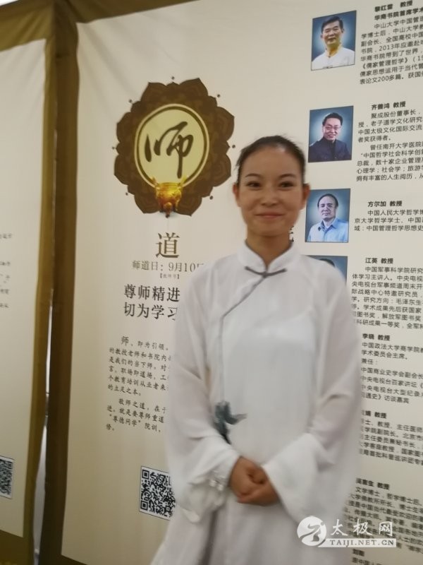 (钱承飞摄影报道:)9月17日,上海闵行《修圆精舍》国学课堂上 ,随着一首常石磊的《问道》歌曲响起,空灵蜿蜒的曲风,《修圆精舍》太极班美女教练武敏翩翩起“武”,自选太极套路编排抽取自于陈式太极拳老架、新架及56式套路招式,以舒缓棉柔起势,整套动作起伏跌宕,刚柔并济,快慢相间,最后以干脆利落的发力收尾。她的太极表演博得了华商书院在场的师生热烈掌声! 著名的华商书院是为董事长、总经理开放的国学与管理研修书院,名师云集,学生实力雄厚,这次把太极文化融入国学之中,《修圆精舍》太极班教练武敏从小就拜名师练武,刻苦钻研,不断提升功力。她的陈式太极拳柔而不丢 ,刚而不僵,以正念为统摄,以太极运动原理为根本,让身心在天然的韵律中苏醒、自性,将健身养生、艺术、哲学结合完美呈现,用肢体语言展示了中华太极文化之美! |