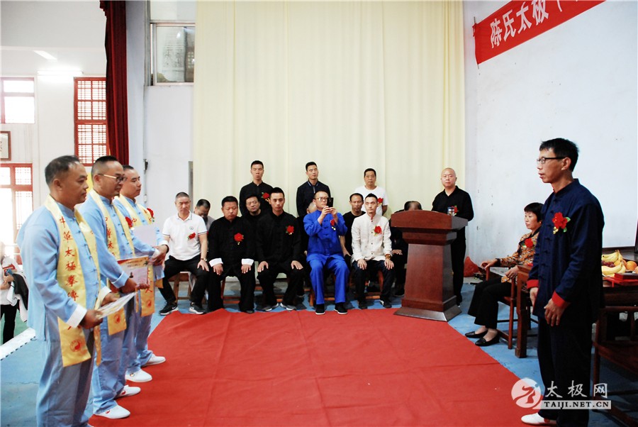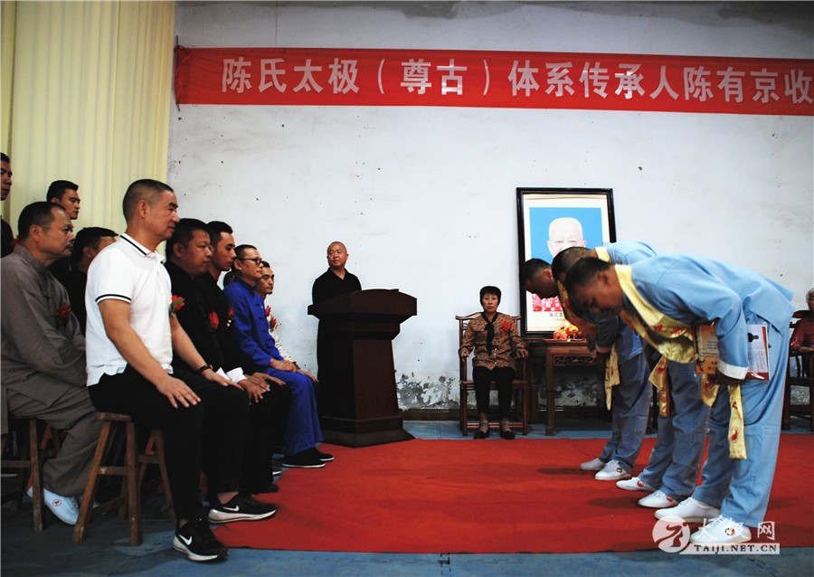 (太极网报道)2018年10月2日,尊古太极传人、太极拳名家陈有京在温县庆州武院举行收徒仪式,刘伟荣、万递禄、朱耀伟三名太极拳爱好者拜在陈有京先生门下,加入陈氏太极拳尊古体系,为尊古太极增砖添瓦。太极网创始人刘洪奇主持了本次收徒仪式。 出席嘉宾 太极网创始人刘洪奇主持收徒仪式,他表示非常荣幸能够在这里见证和主持陈有京先生的收徒仪式,同时代表太极网、太极拳传承人联合会向陈有京先生以及他的弟子们表示祝贺,向各位嘉宾的到来表示感谢,同时也向各位来宾表示节日的祝福。 拜师仪式正式开始,陈有京先生向历代太极拳宗师及太极拳先贤敬香祭酒,弟子们向师父宣读拜师贴、行鞠躬礼,向师父师母敬茶;陈有京一一为新弟子披挂绶带,回弟子帖,并向新弟子颁发传承证,随后陈有京先生带领弟子向太极拳历代先贤敬香,带领新入门弟子集体叩拜,三位弟子正式成为尊古太极门下弟子。 新入门弟子代表发言,他表示今后将会谨遵师父教诲,认真习练太极拳,持之以恒,坚持不懈,为早日成为优秀太极拳传承人不懈努力。 鉴证人代表王成龙讲话,希望大家刻苦努力,同时他也祝愿拜在陈有京先生门下的弟子能够在师父的教导下快速成长起来,提升太极拳技艺水准,加深太极拳文化理解,为太极拳事业的发展做出更多更好的贡献。 陈有京老师向新弟子训话,希望弟子们能够尊师重道,恪守门规祖训,用心习练太极拳,努力成为合格的太极拳传承人,为太极拳的传播和推广做出自己应有的贡献。 合影留念 拜师仪式圆满成功,新弟子们一一向各位嘉宾鞠躬致谢,所有人员合影留念,收徒仪式圆满结束。 陈有京太极档案: 陈有京,男,出生于1964,温县黄庄镇徐吕村人,陈庆州弟子。出生于太极世家,自幼随父陈庆州学习家传陈式太极拳,几十年如一日,刻苦练习,细心钻研,深得拳术精华,一直在家协助父亲办校,授拳。上世纪八十年代起,应邀走出家门,先后到深圳、温州、扶沟、义乌等地授拳,从者众多。有不少弟子在各级各类比赛中取得优异成绩。 责编:太极网辛 |